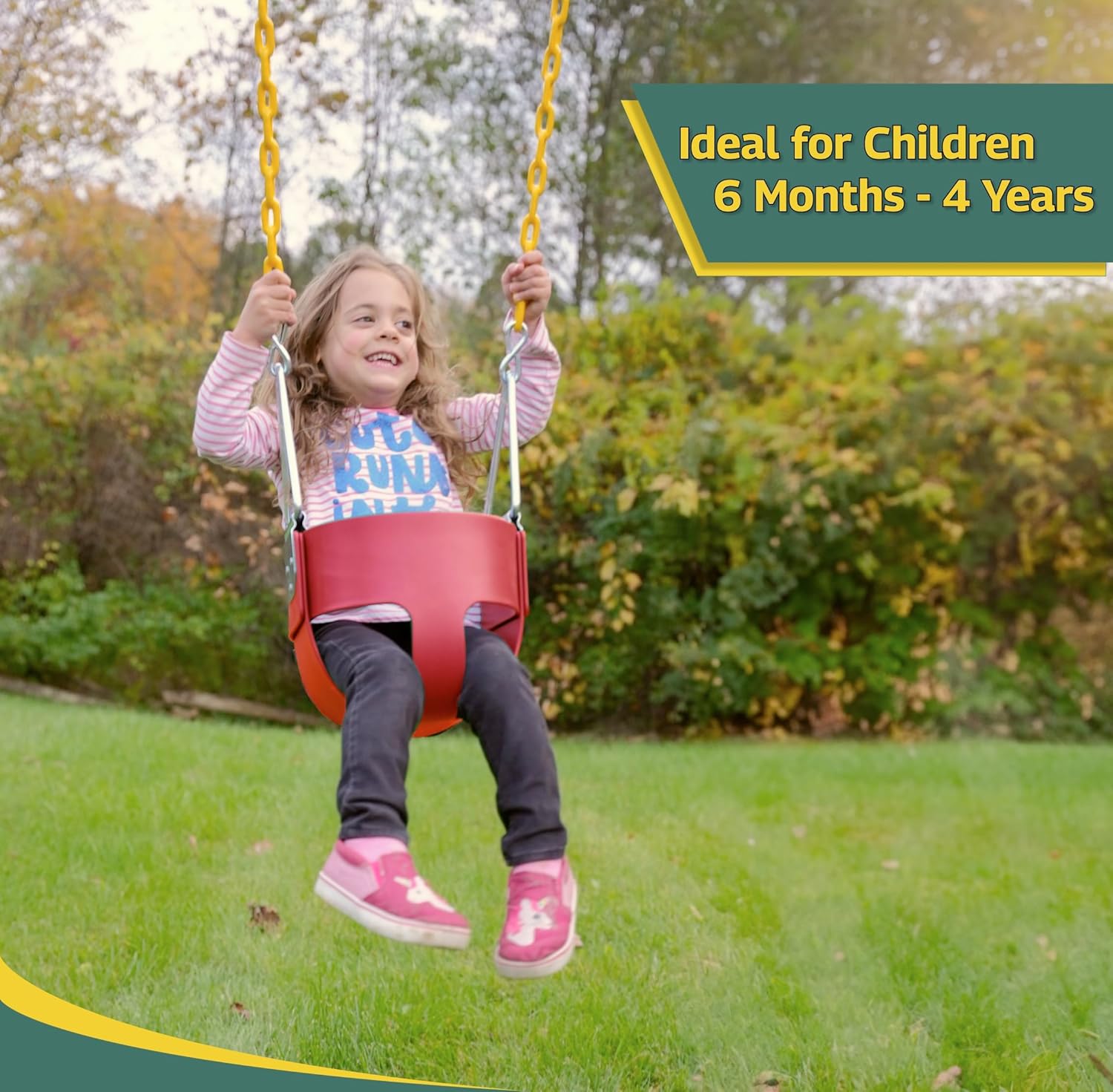 Eastern Jungle Gym Heavy-Duty High Back Full Bucket Toddler Swing Seat | Coated Chains Fully Assembled | Red Swing Set Accessory