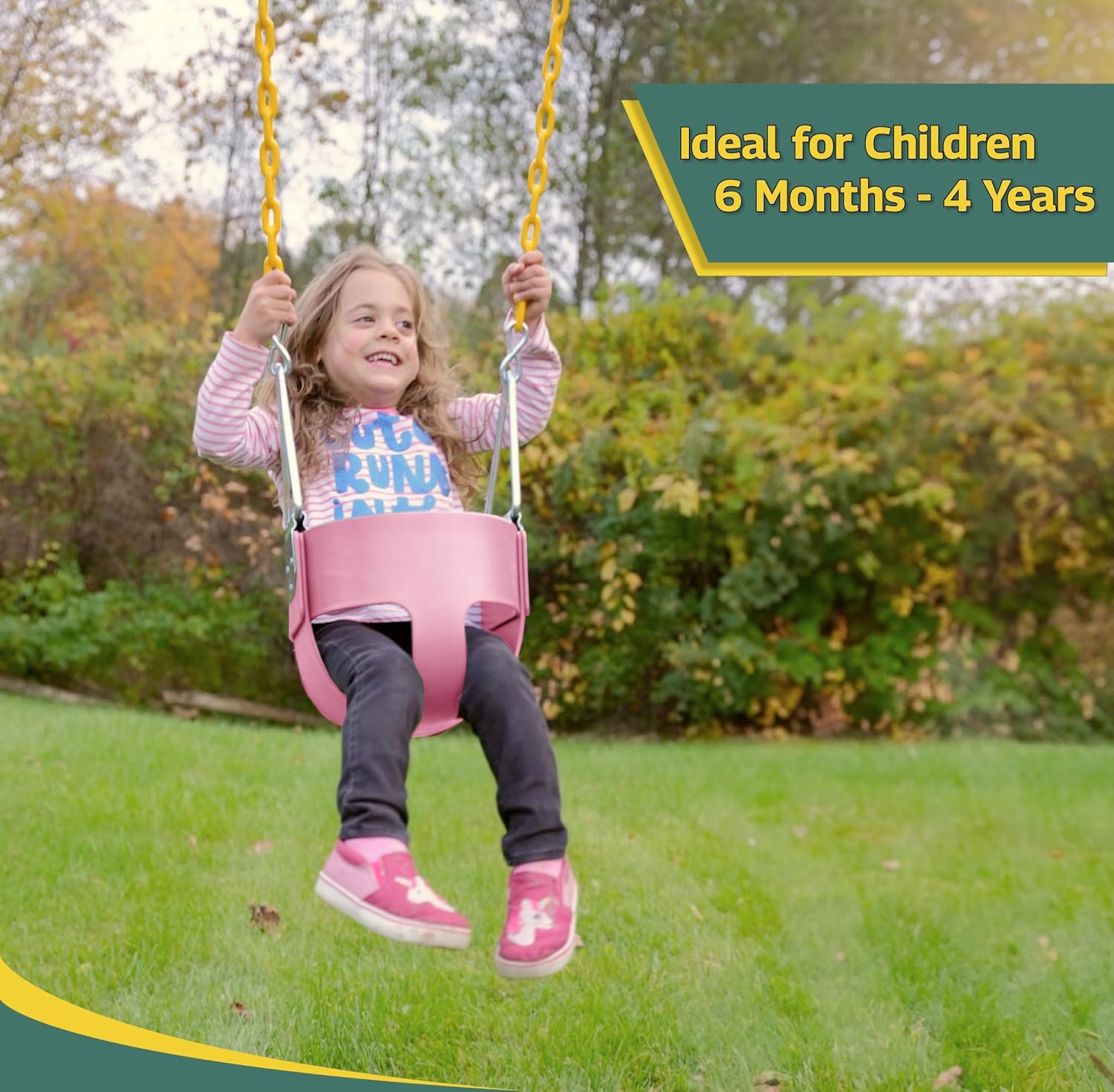 Eastern Jungle Gym Heavy-Duty High Back Full Bucket Toddler Swing Seat | Coated Chains Fully Assembled | Pink Swing Set Accessory