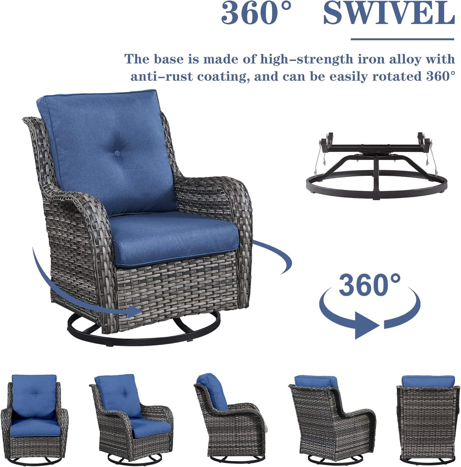 - 2.Elegant Swivel Glider Chair: Soothe away stress in our unique wicker swivel rocker glider chairs that combine the relaxing benefits of glider with the soothing motion of 360 swivel. Designed for pure relaxation, these chairs elevate your outdoor comfort, adding a touch of luxury to your space.