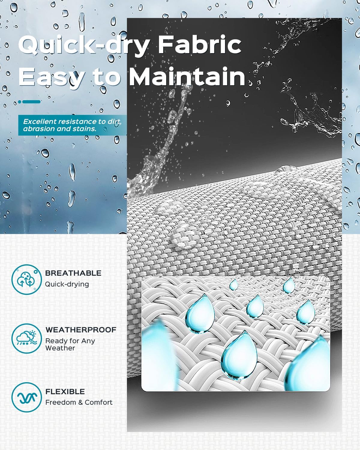 - ăEASY MAINTENANCEăThis chaise lounge boasts a robust aluminum frame and premium Texitilene fabric. Durable and weather-resistant, the lightweight Texitilene material is breathable and quick-drying, ensuring air circulation and ventilation on hot days for optimal comfort