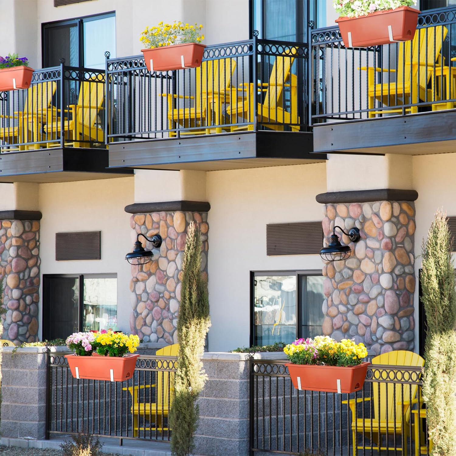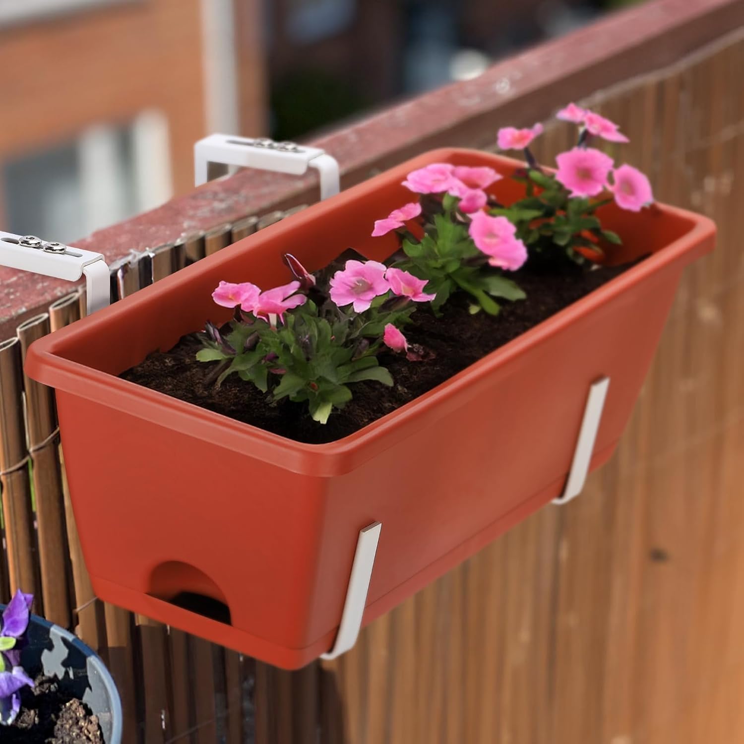 - Railing Flower Box: Crafted from PP plastic with adjustable metal brackets for balcony or windowsill display. Withstanding extended outdoor exposure, it's perfect for showcasing your beloved plants and flowers.