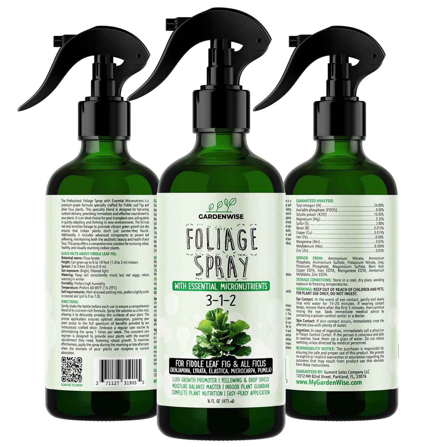 - 🍃 PREVENTS LEAF DROP AND YELLOWING: Our specially designed formula not only tackles common Fiddle Leaf Fig problems like leaf drop by providing the right balance of nutrients and moisture directly to the leaves, but it also acts as a preventive measure against leaf yellowing. This ensures your Fiddle Leaf Fig remains healthy, with lush green foliage.