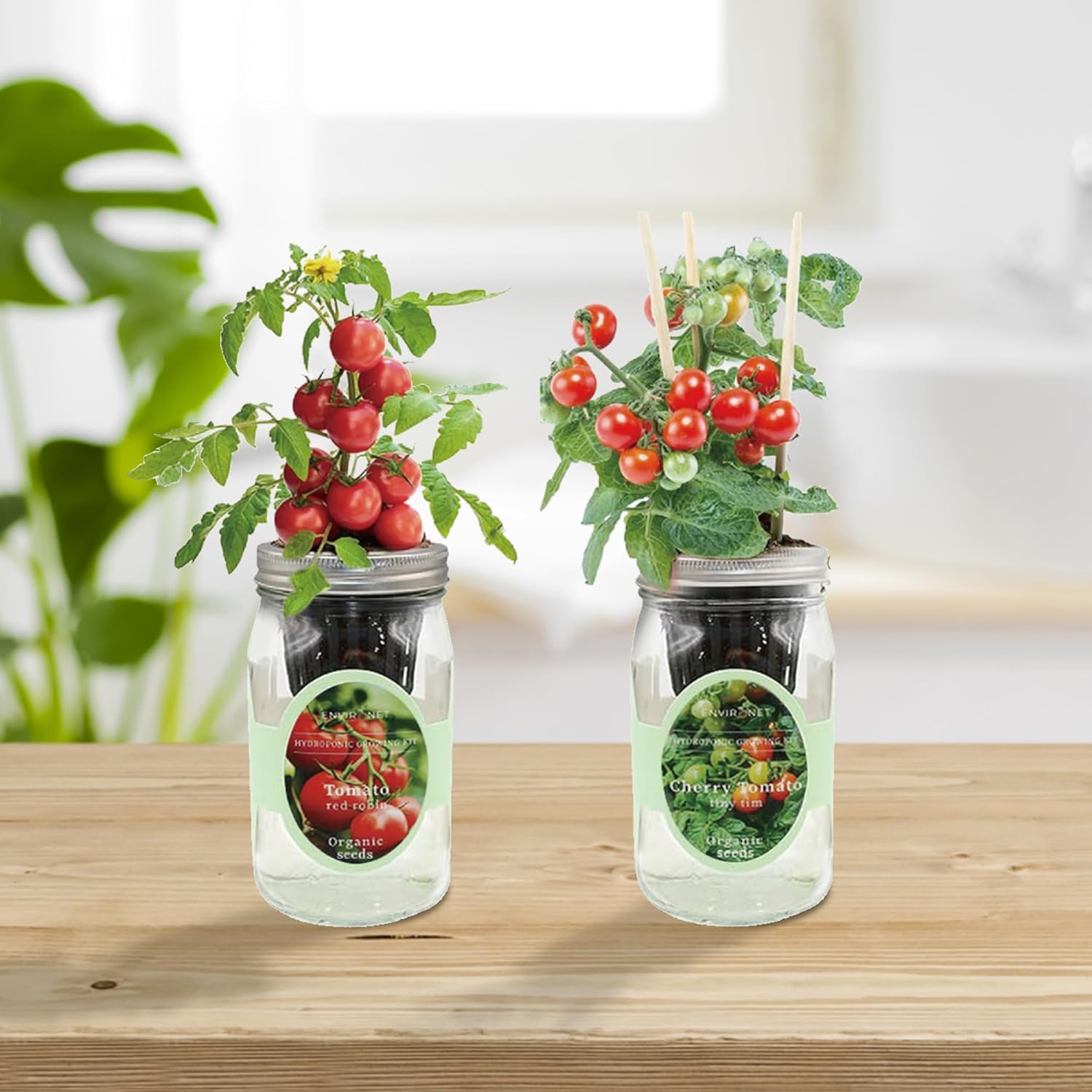 2-Pack Hydroponic Mason Jar Herb Garden Kit, Indoor Herb Garden Self-Watering Starter Kit (Cherry Tomato,Red Robin Tmato)