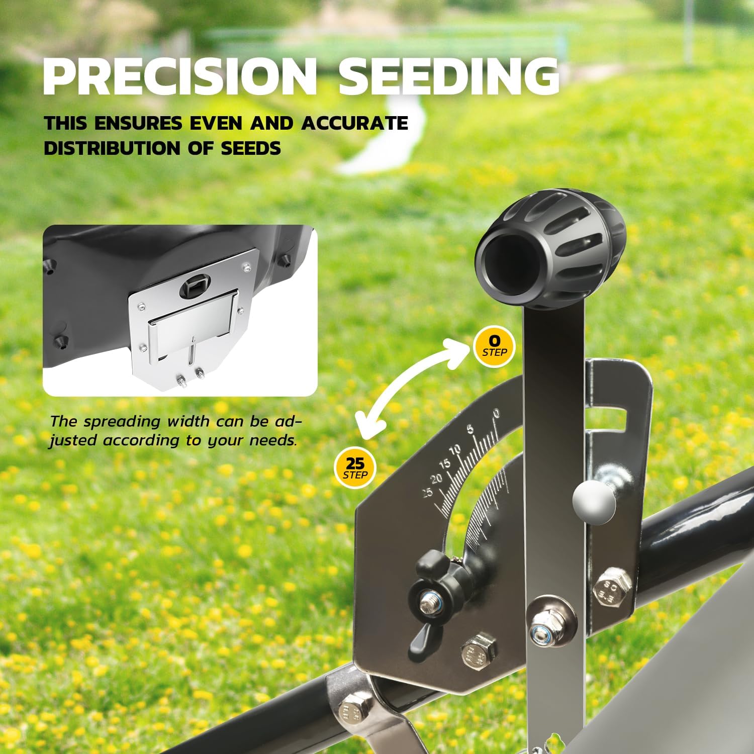 - VERSATILE WALK BEHIND SPREADER - 80 lbs(36kg) / 29L capacity, satisfies large-scale broadcasting in one go.
