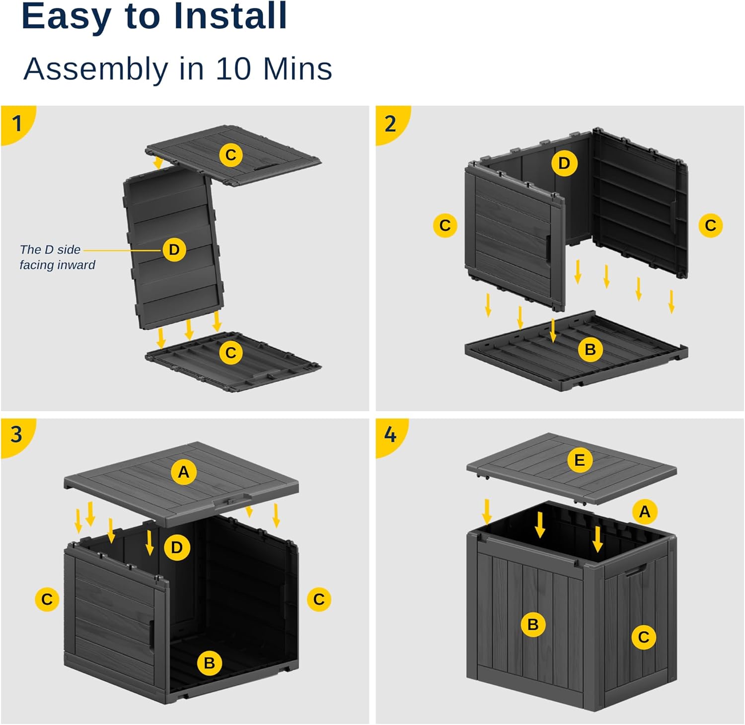 - πͺππ§ππ₯π£π₯π’π’π ππ‘π ππππ π£π₯π’π’π: This deck box adopted upgraded resin material (SGS 1000plus) that protects its exterior from fading and keeps its interior dry no matter what the weather is