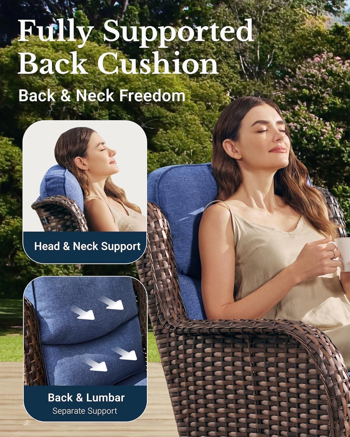 - Handwoven PE Rattan: Crafted with long, wide strands for a real wicker feel—just as elegant, but far more durable. Each piece carries the care of human hands and resists cracking, fading, and warping through sun, rain, and snow