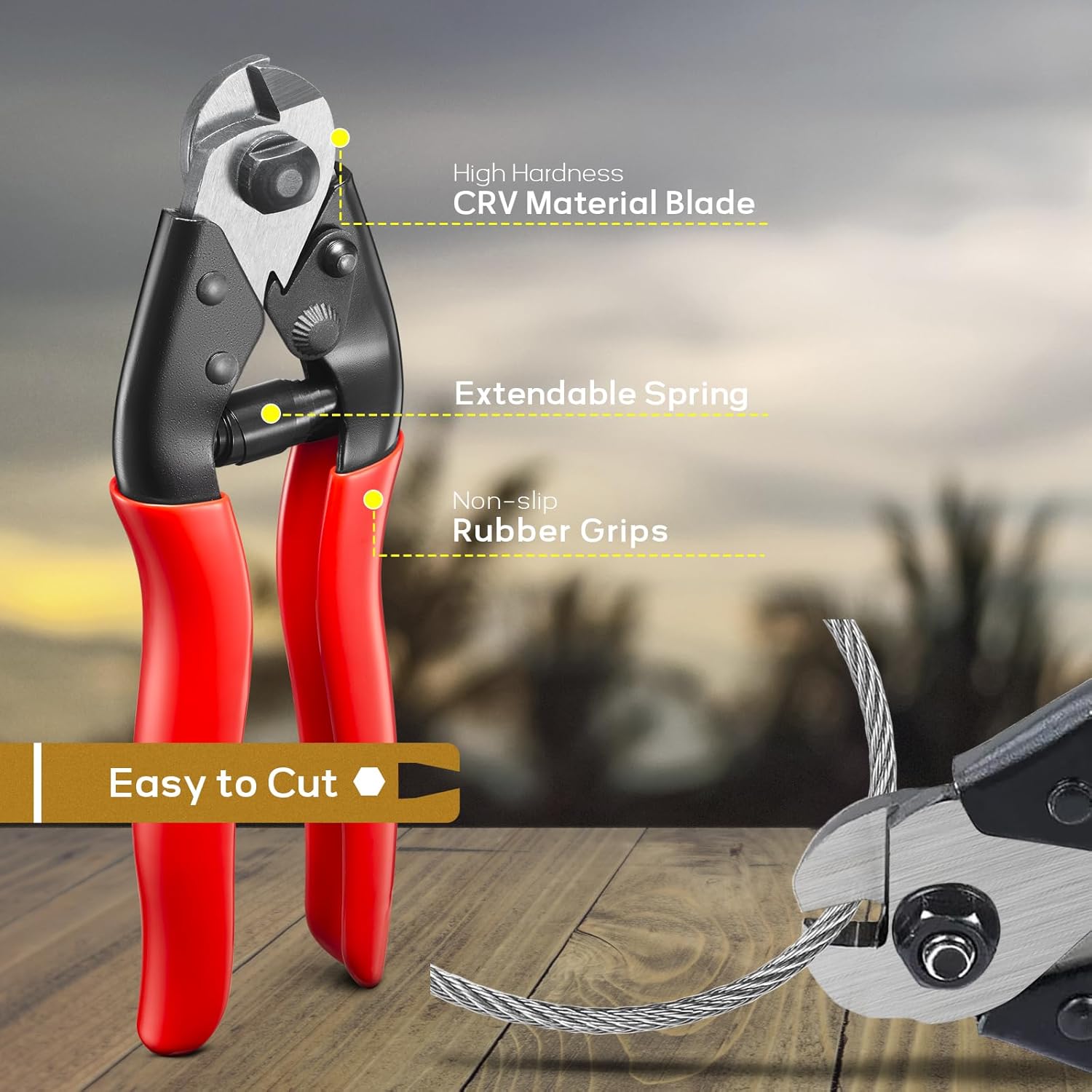- Convenient Use and Storage: We provide 1Ă— 600 ft cable railing wire and 1Ă— cable cutter. The wire rope is smoothly wrapped around the reel and can be cut to the length we need, the whole design is very convenient to use and store