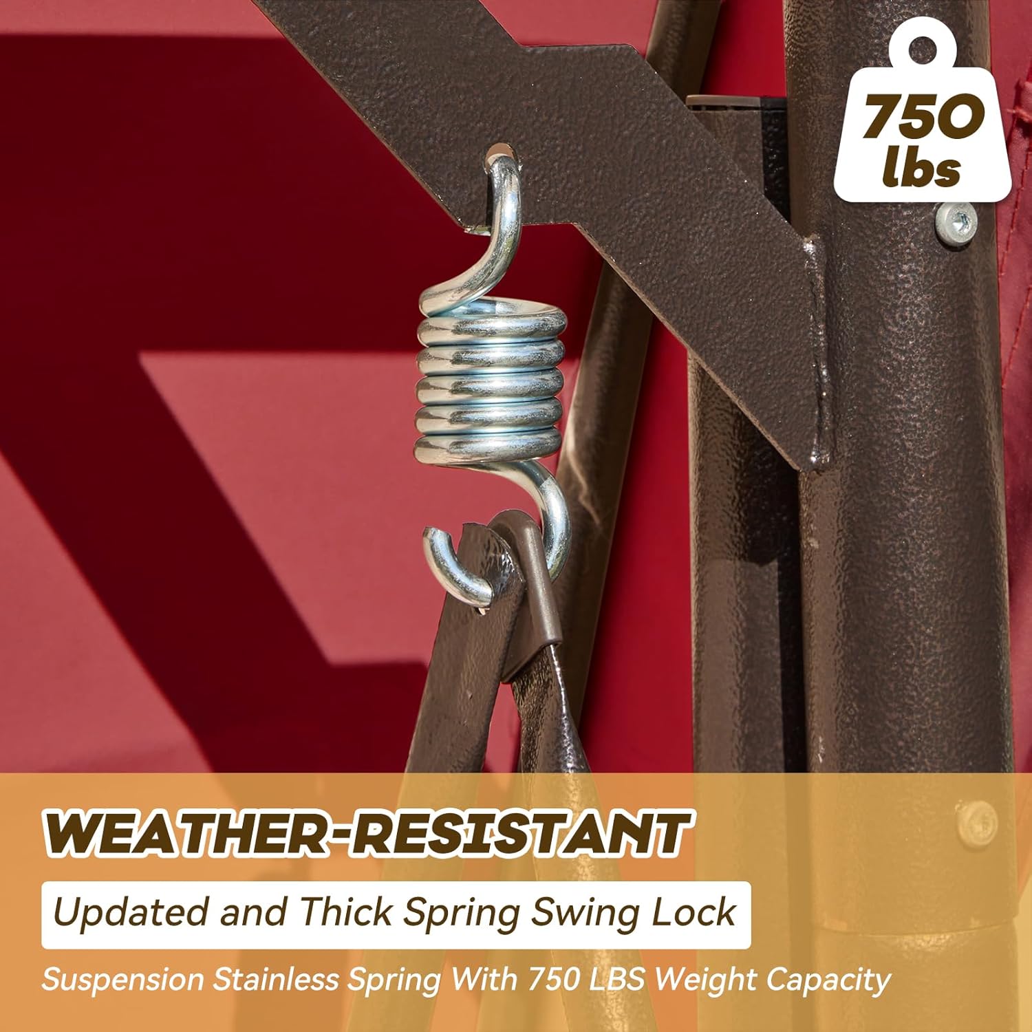 - ăSturdy and Safe Constructionă: The maximum weight capacity of porch swing is 750 pounds, our glider swing is designed for 3 adults to sit comfortably. The swing outdoor has a reliable buckle on backrest, ensuring stability and preventing any unwanted swinging. The double protection of 3 seat garden swing is designed for preventing accidental tipping.
