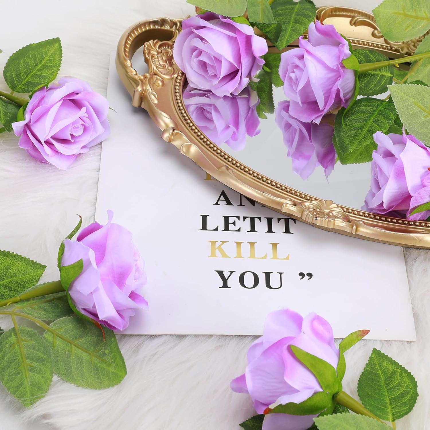 36 Pcs Silk Purple Rose Bouquet Bridal Artificial Flowers,Fake Rose Long Stem Realistic Artificial Flowers Bulk for Wedding Bouquet Ball Arrangement Centerpiece Party Decor