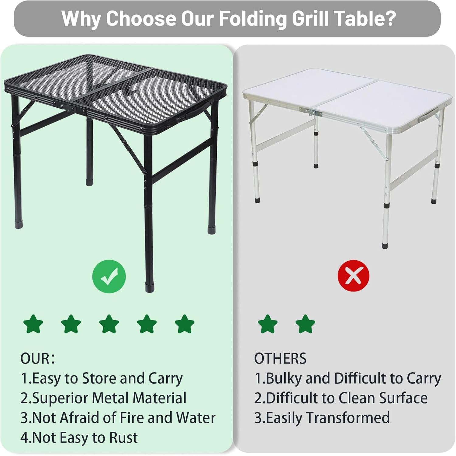 - 【Convenient to Use】This grill tables for outside can load capacity up to 66 pounds, easy to install and fold without any tools. You can set up a small barbecue grill here, enjoy the leisure time on vacation!