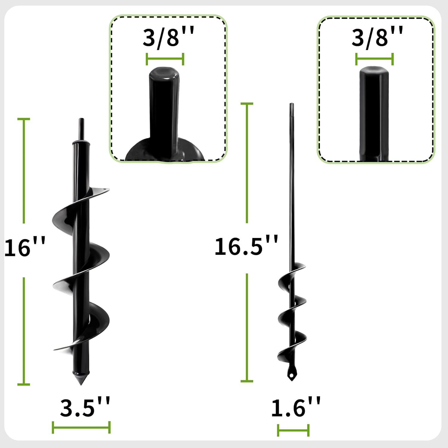 - Versatile Sizes: Includes two auger drill bits – 3.5" x 16" for larger bulbs and 1.6" x 16.5" for smaller plants and flowers, accommodating a wide range of planting needs.