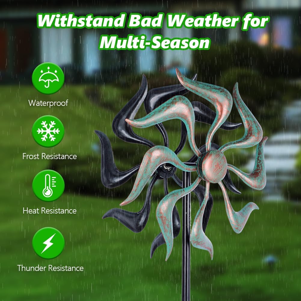 - Durable:This wind spinners can be used to decorate your yard all year round, because it uses metal raw materials and anti-rust coating
