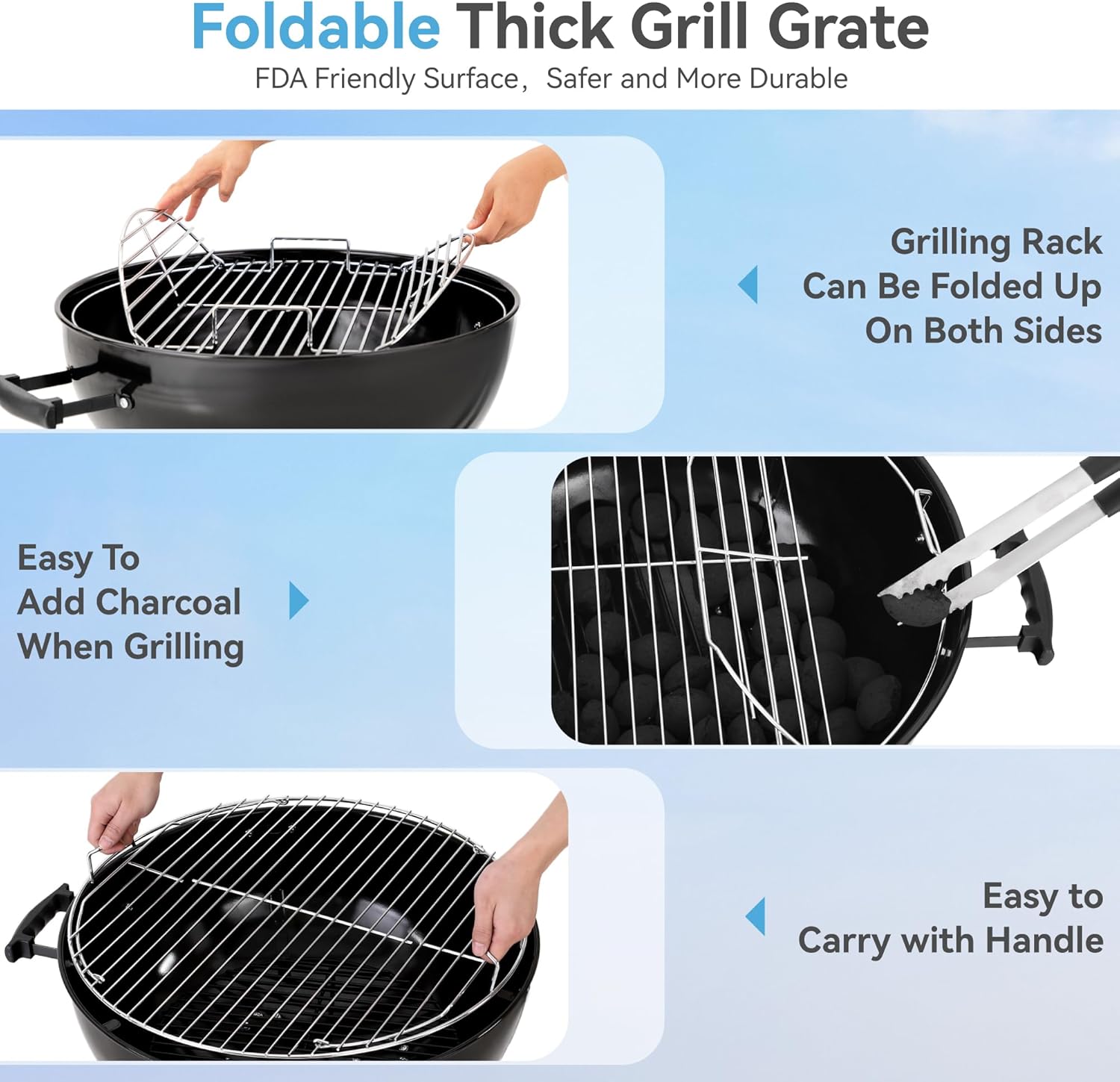 - KETTLE GRILL: Our Kettle Charcoal BBQ Grill is made from sturdy steel. The grill part all processes by porcelain enamel include lid, grate, charcoal grill part and ash catcher, ensuring durability and longevity, won’t rust or peel. so you can keep the good times grilling for years to come