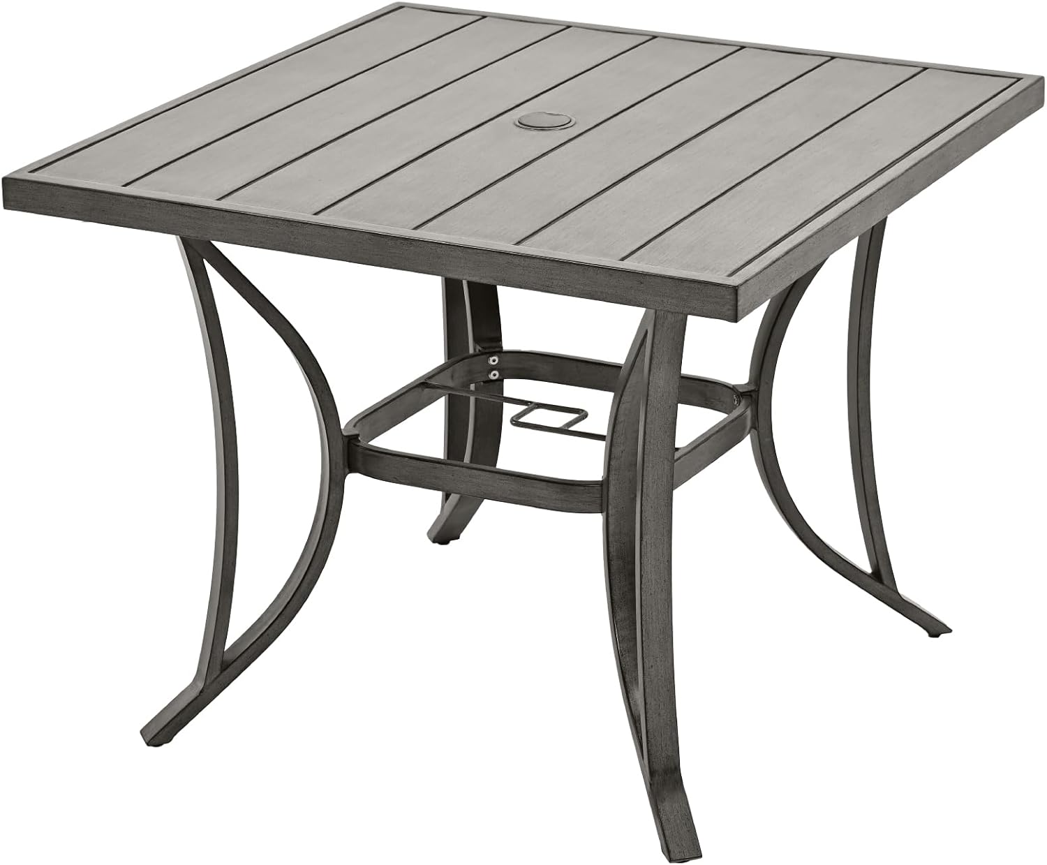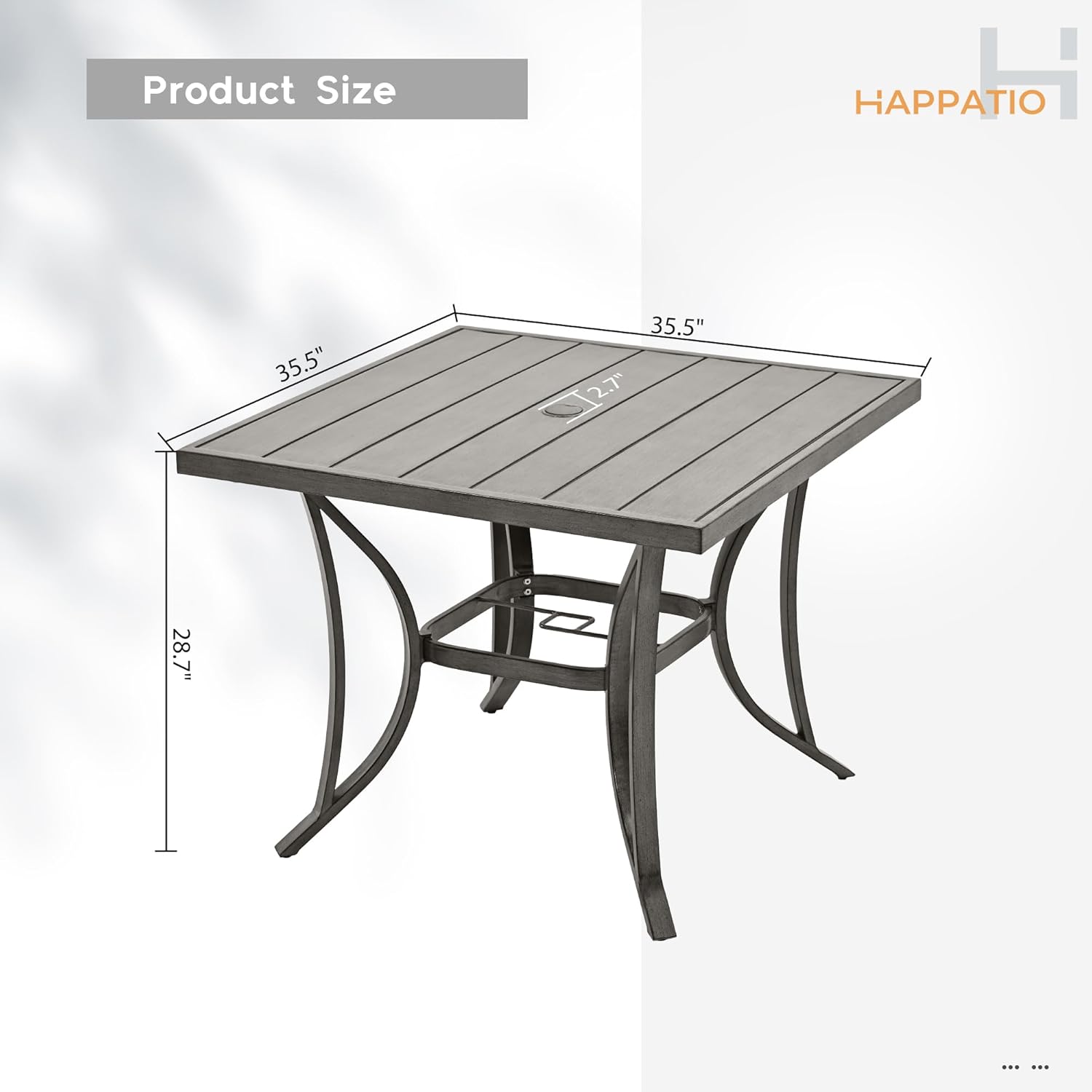 HAPPATIO Square Outdoor Dining Table - Patio Aluminum Slat Dining Table with 2.2" Umbrella Hole, 4 Person Dining Table for Garden, Backyard and Poolside