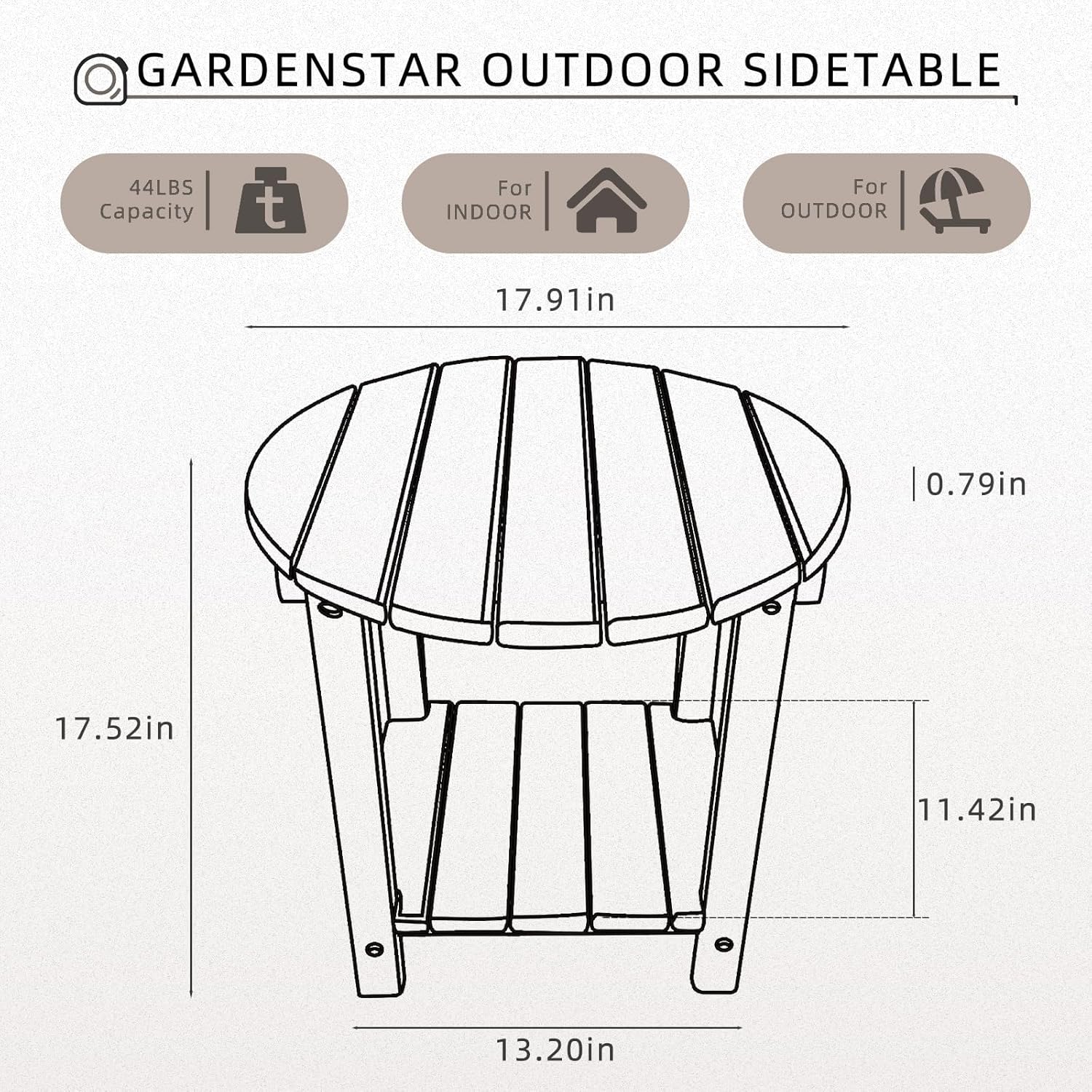 - ăPERFECT SIZEă17.91"H x 17.52"D x 13.2"W.The outdoor side table will not take up too much space. Perfect to put your books, drink, flowers on, you could free your hands, enjoy your time.Ideal size to complement patio chairs, Adirondacks, or chaise lounges.