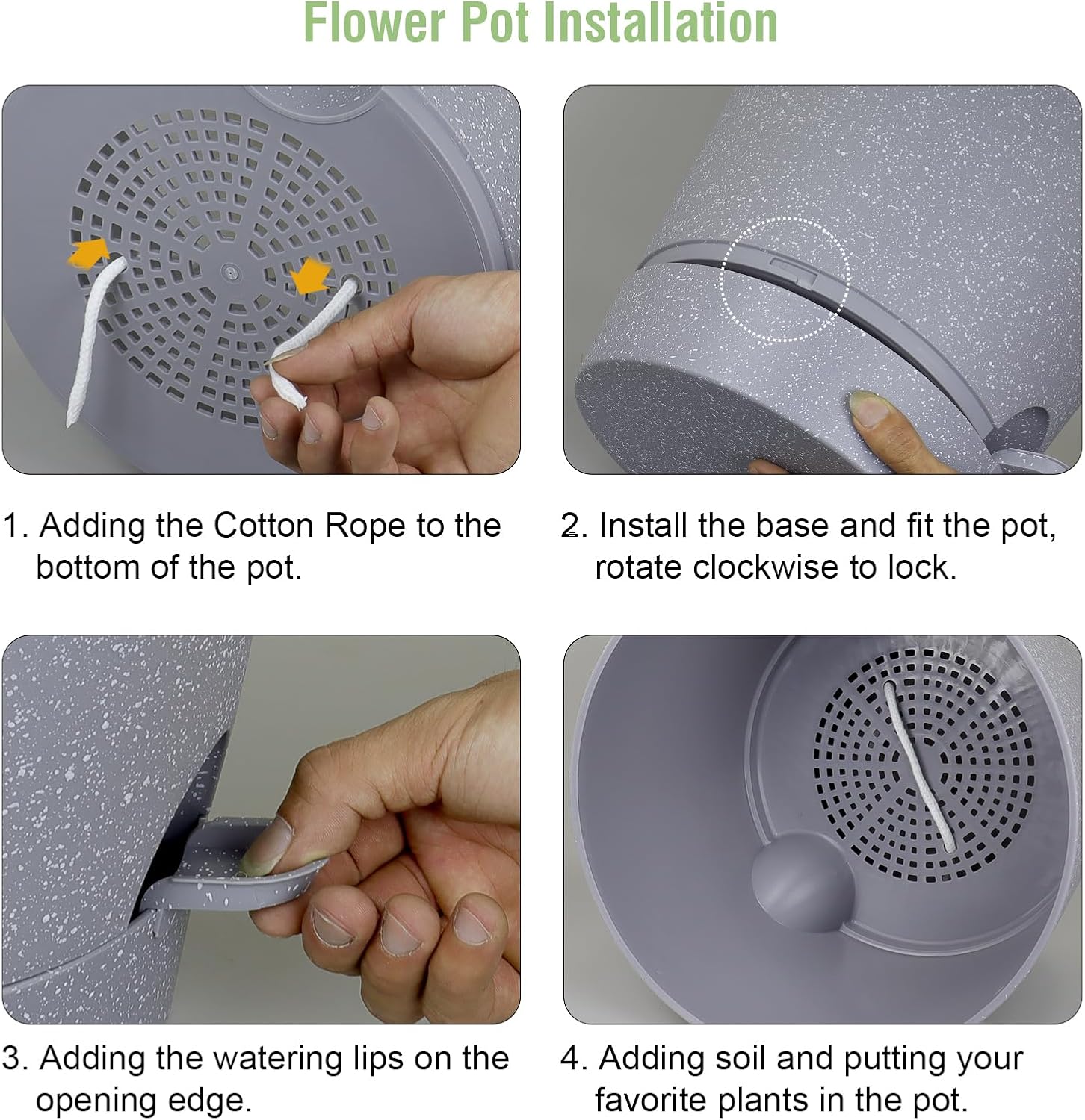 - 【Self-Watering Design】 Self-watering pots is includes a water reservoir at the bottom of the planter. This flower pots automatically supplies water to your plants as needed by a cotton rope, reducing the frequency of watering and ensuring your plants never go thirsty. The reservoir design also helps maintain a consistent moisture level, fostering optimal growth conditions.