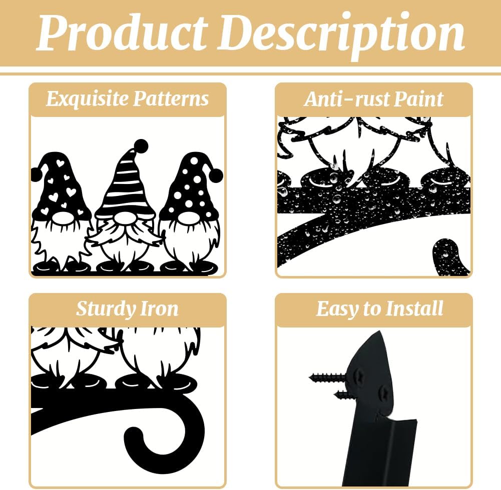 peacoblue Iron Plant Hangers Hooks for Outdoor Indoor Hanging Plants Flower Fern Pots, Lantern, Bird Feeder, 12”x14”Gnome Weather Resistant Metal Wall Brackets Holder for Porch, Garden, House(Gnome)