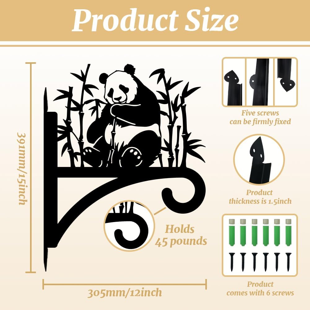 Peacoblue Iron Plant Hangers Holder for Outdoor Indoor Hanging Plants Flower Fern Pots Lantern Bird Feeder Wind Chimes, 12”x14” Weather Resistant Metal Wall Bracket Hooks for Porch Garden House(Panda)