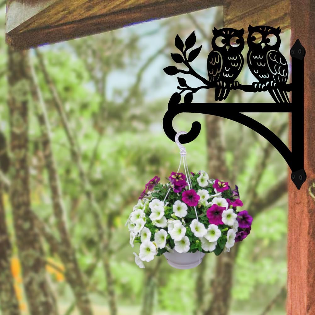 peacoblue Iron Plant Hangers Hooks for Outdoor Indoor Hanging Plants Flower Fern Pots Lantern Bird Feeder Wind Chimes, 12"x14" Owl Weather Resistant Metal Wall Holder for Porch Garden Farmhouse(Owl)