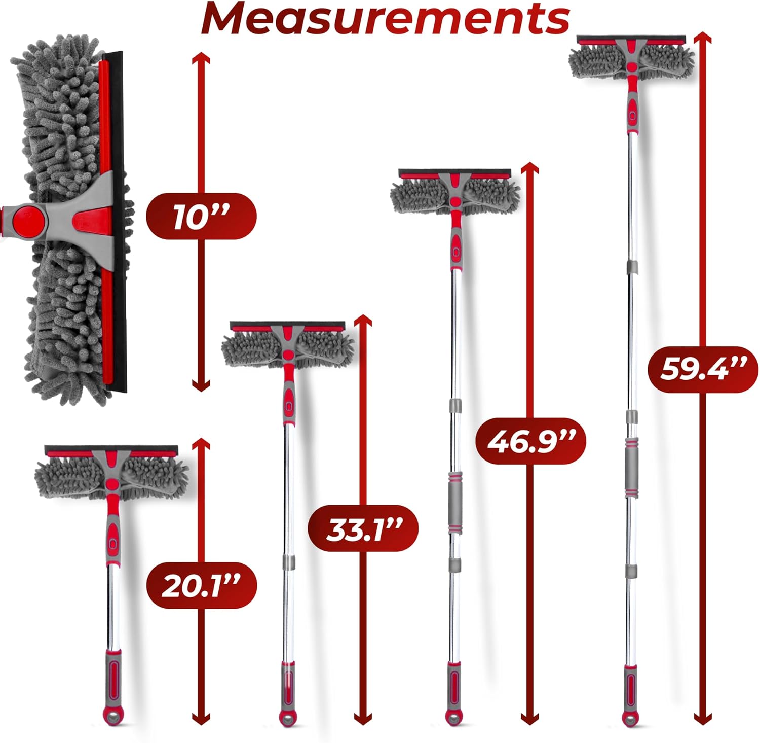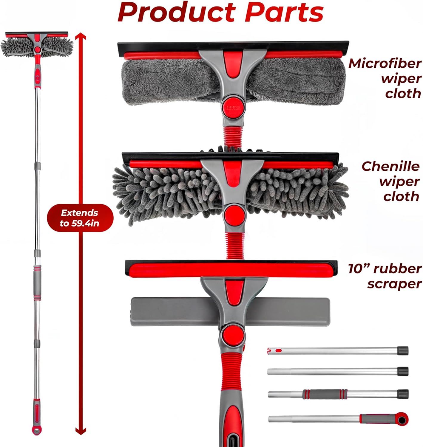 - ✅ Versatile Window Cleaning Kit: This window cleaning tool has 3 different head options to deal with diverse cleaning needs including a 10" rotatable bendable rubber scraper, microfiber and chenille wiper cloths. Various combinations of the window washing kit with the adjustable attachment make cleaning easy and efficient.