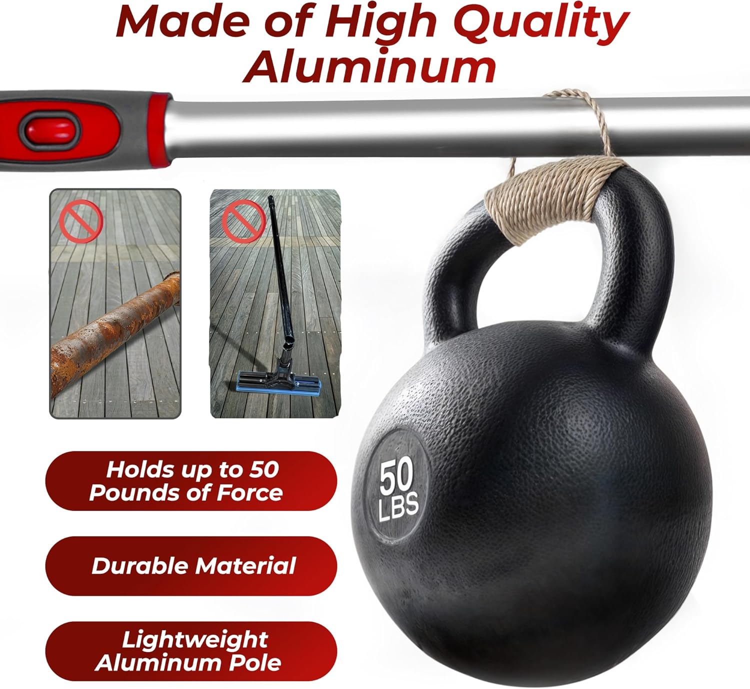 - ✅ Lightweight & Extensive Reach: Window squeegee kit with a 4-section aluminum detachable poles can help to reach the tops of windows without resorting to ladders or stepladders. Window cleaner tool is making the cleaning process much easier and safer. Maximum length of the durable pole is 59.4''.