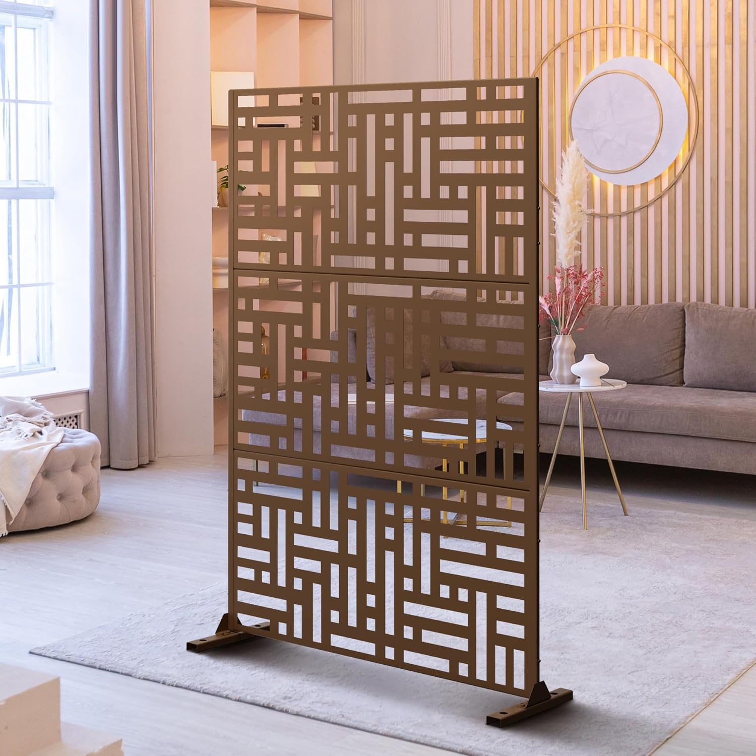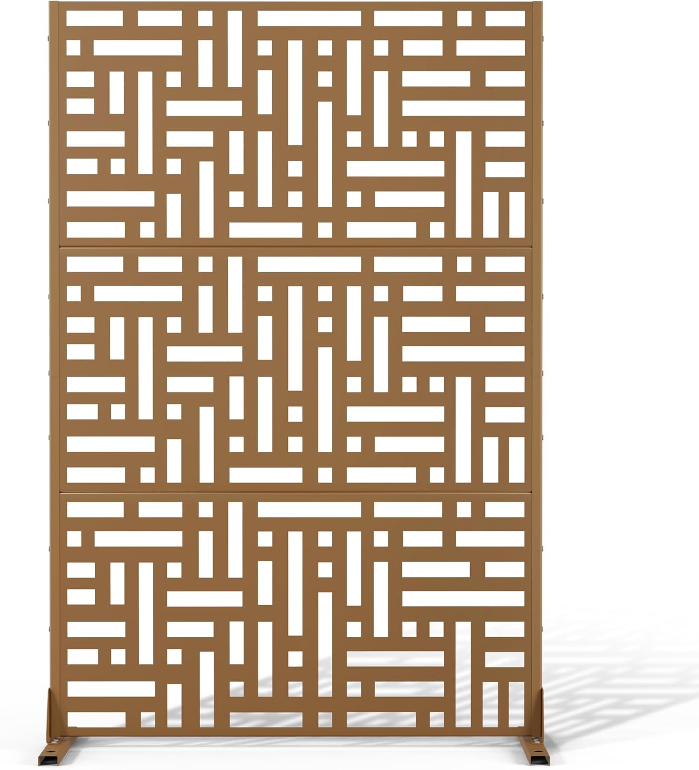 Metal Privacy Screen Outdoor 72" H×47" W,Freestanding Decorative Privacy Screen for Balcony Yard&Garden,Privacy Fence-Brown&Street