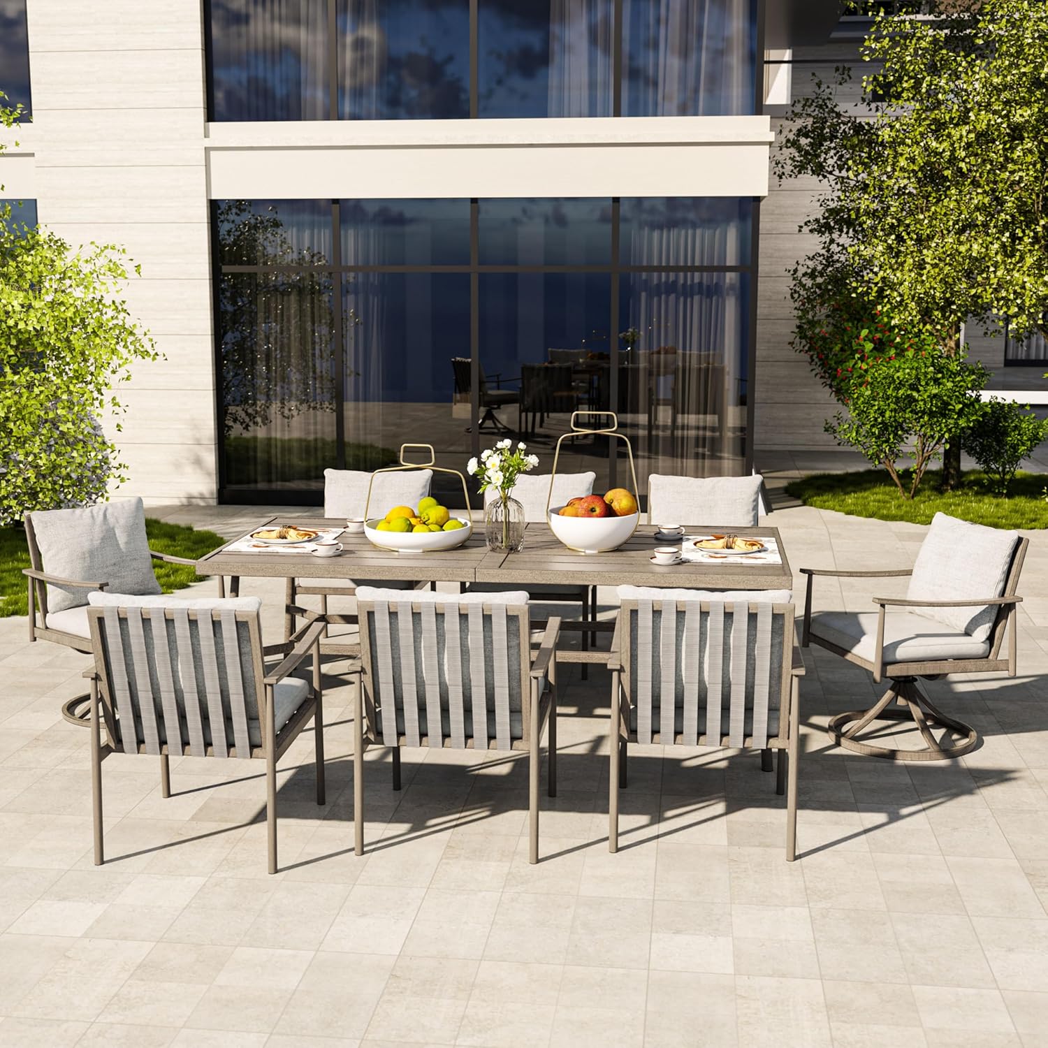 - Practical Dining Table for 8: This 84.1" x 39.8" large rectangle outdoor dining table comfortably seats 4 people, so you can enjoy leisurely meals with your family and friends. It's the perfect addition to your backyard, poolside, balcony, garden, or deck, creating a cozy outdoor hangout spot.