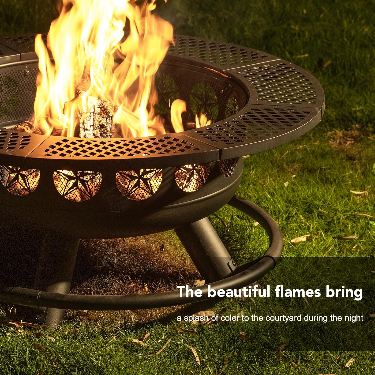 - Perfect Multifunctional Design:This outdoor fire pit comes with a cooking grill and a lid, which can be used for barbecue or as a metal table.There is a fire ring design at the bottom of the fire pit.