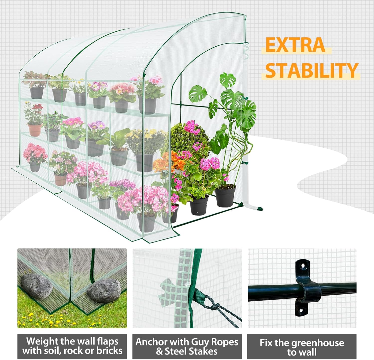 - WALL SUPPORT REQUIRED: Designed as a lean-to structure, this greenhouse must be installed against a solid, stable wall to ensure safety and durability, especially in windy or harsh weather conditions