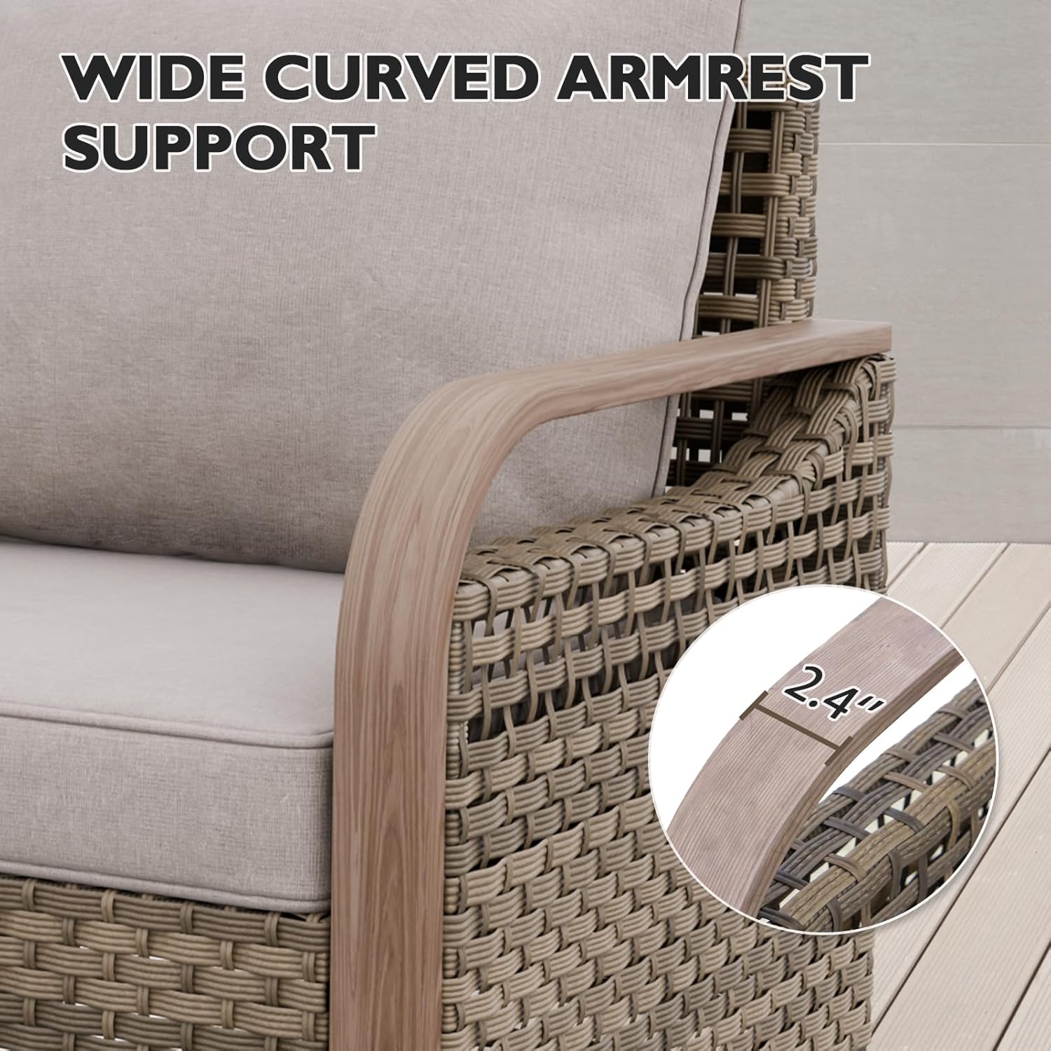 - GATHER, RELAX, ENJOY: These wicker armchairs have generously widened seats and plush 5-inch back cushions for ultimate comfort. Designed for outdoor living, it's made with UV protection and weather resistance materials, making this furniture set the ideal choice for stylish, worry-free lounging.