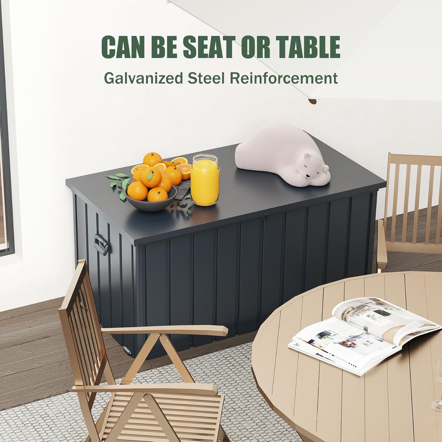 Domi Deck Box Outdoor 150 Gallon, Waterproof Lockable Steel Outdoor Storage Container for Outside Cushions, Garden Tools and Pools Equipment, Gray