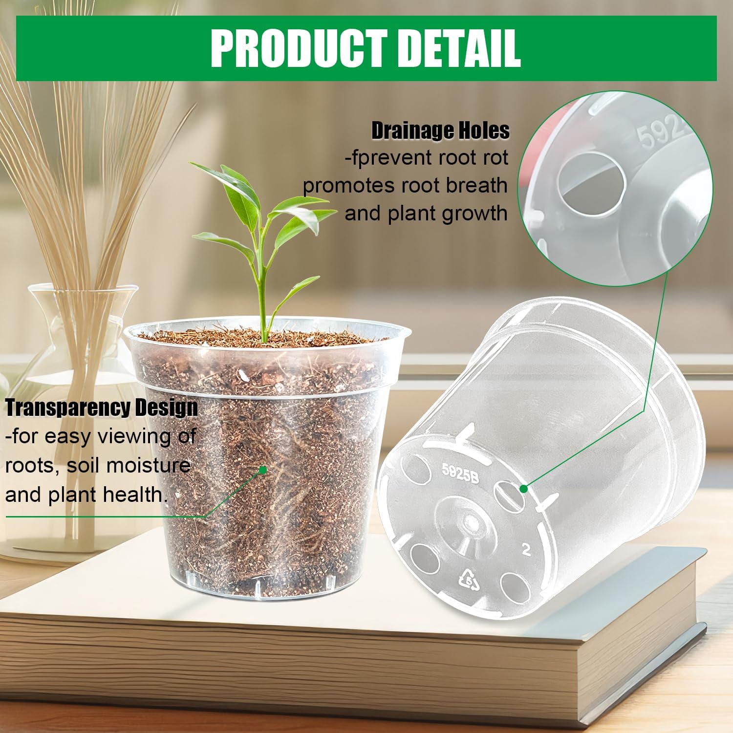 - New PP Plastic: Our clear pots for plants are make of new PP plastic, which are more durable and sturdy. And you can get 40 pack 3.3 inches clear nursery pots. Height is 3 inch, bottom diameter is 2.3 inch. These seed starter pots provide the good environment to promote the healthy growth of seedlings.