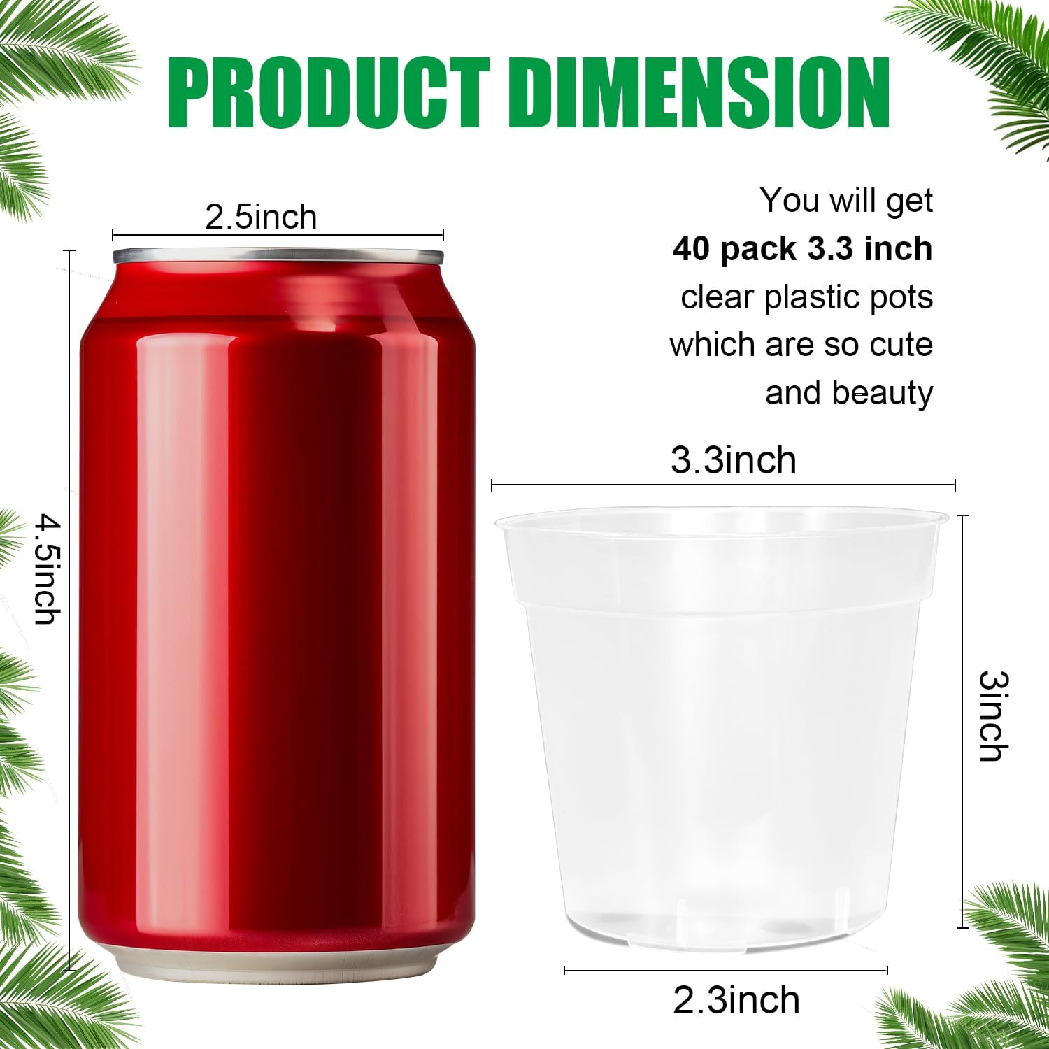 40 Pack 3.3 Inch Clear Nursery Pots for Plants, Sturdy Plastic Plant Pot for Planting Vegetables Flowers Seedlings, Transparent Seed Starter Pots with Drainage Holes, Gardening Gifts(40P-3.3"Clear)