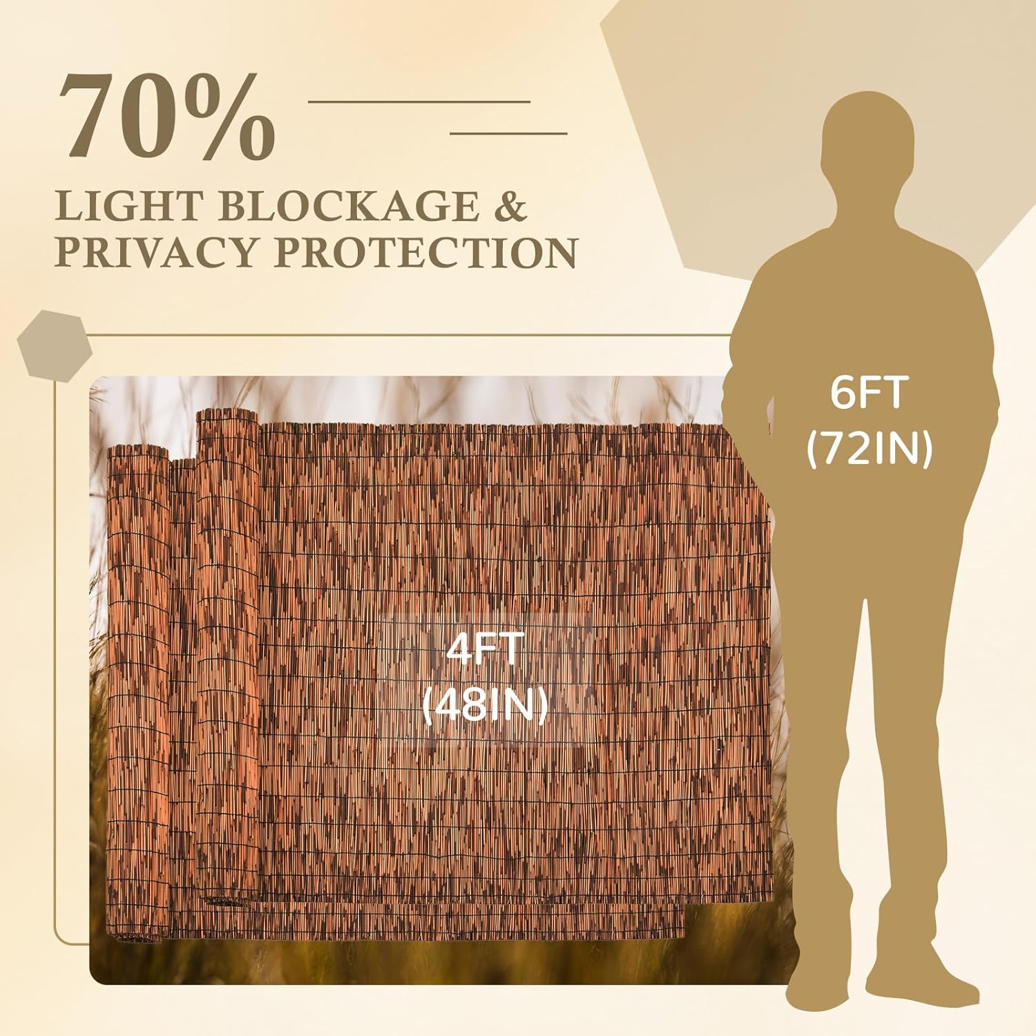 - Product Features: The bamboo reed fence rolls are 2 Pack 4 feet high and unfold to a length of 32.8 feet. They are designed to conceal unsightly bins, fences, or other objects, while also enhancing privacy for backyards, balconies, patios, or swimming pools