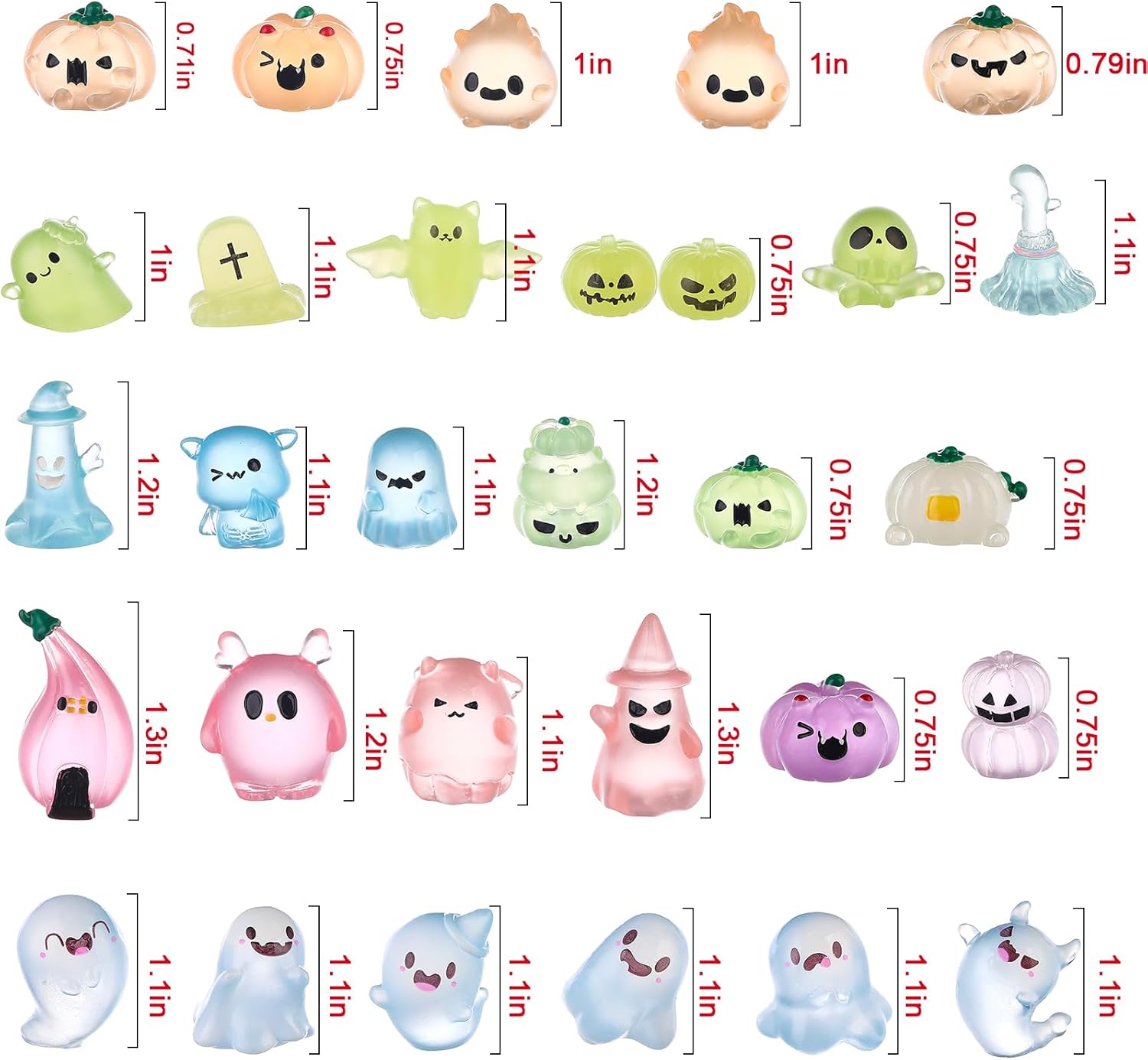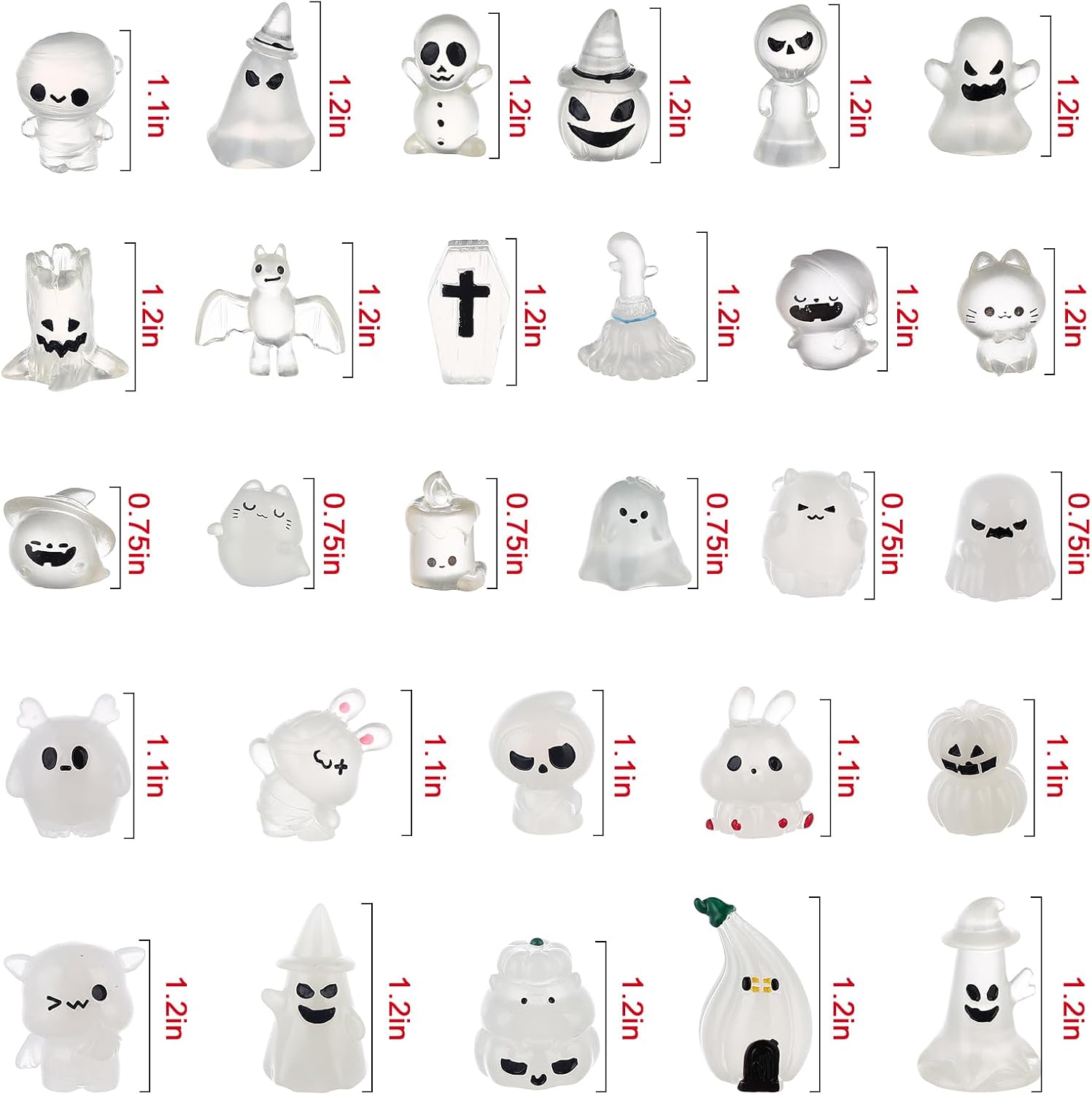 58 Pcs Halloween Luminous Mini Figures Glow in Dark Tiny Resin Figures Set Fairy House Diorama Accessories Halloween Pumpkin Ghost Skull Ornament for Garden Dollhouse Craft DIY(Ghost)