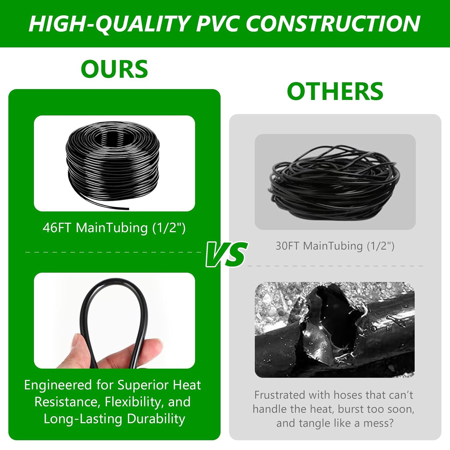 - Wide Applications: New drip irrigation kit is great for lawn irrigation, patio, garden, vegetable irrigation, roof cooling, agriculture, flower beds, plant greenhouse, swimming pool mist cooling irrigation, raised bed, etc
