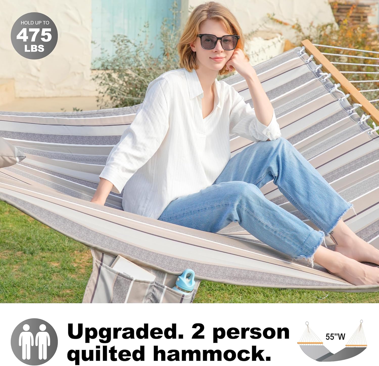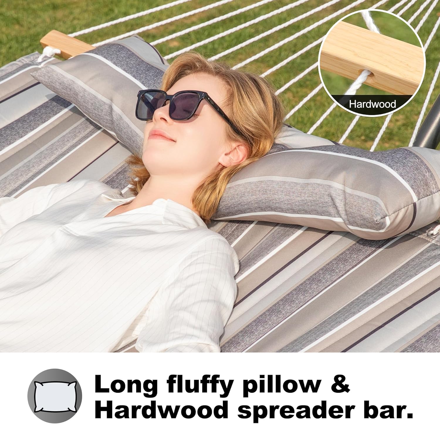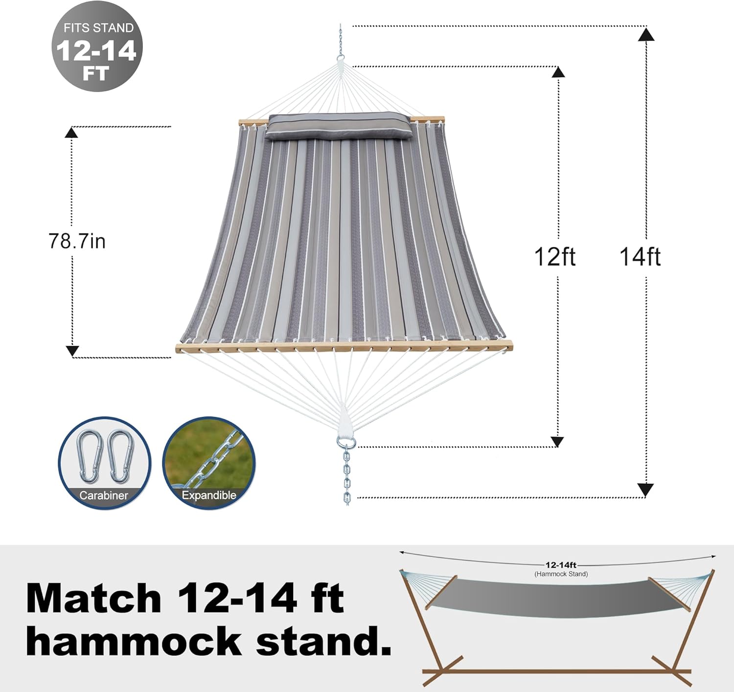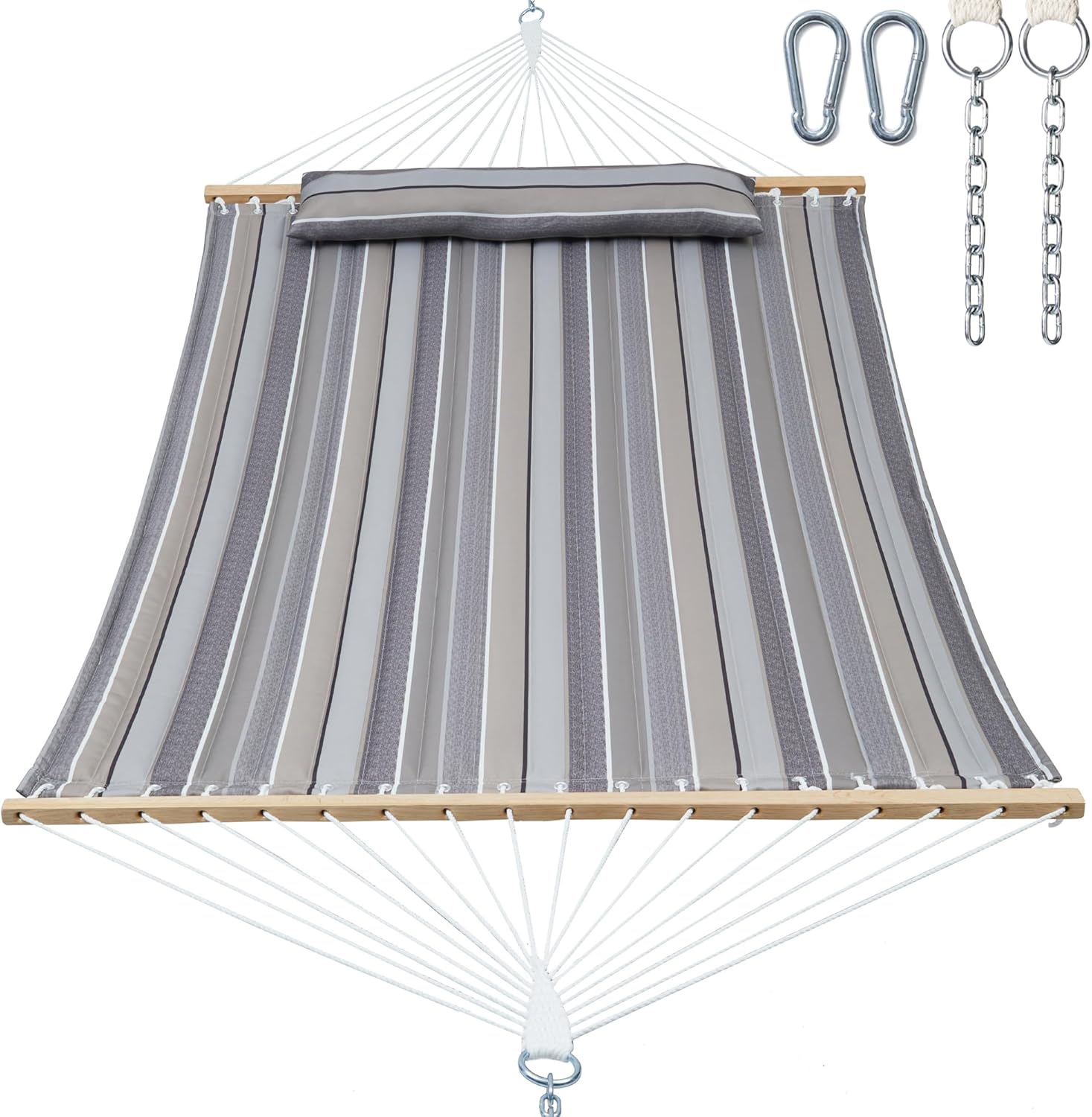 Double Quilted Fabric Tree Hammock with Spreader Bar, 14ft Hammocks 2 Person for Outside, Fits 12ft -14ft Hammock Stand, Pillow & Side Pockets & Carabiners, Max 475 lbs Capacity (Peace Dove)