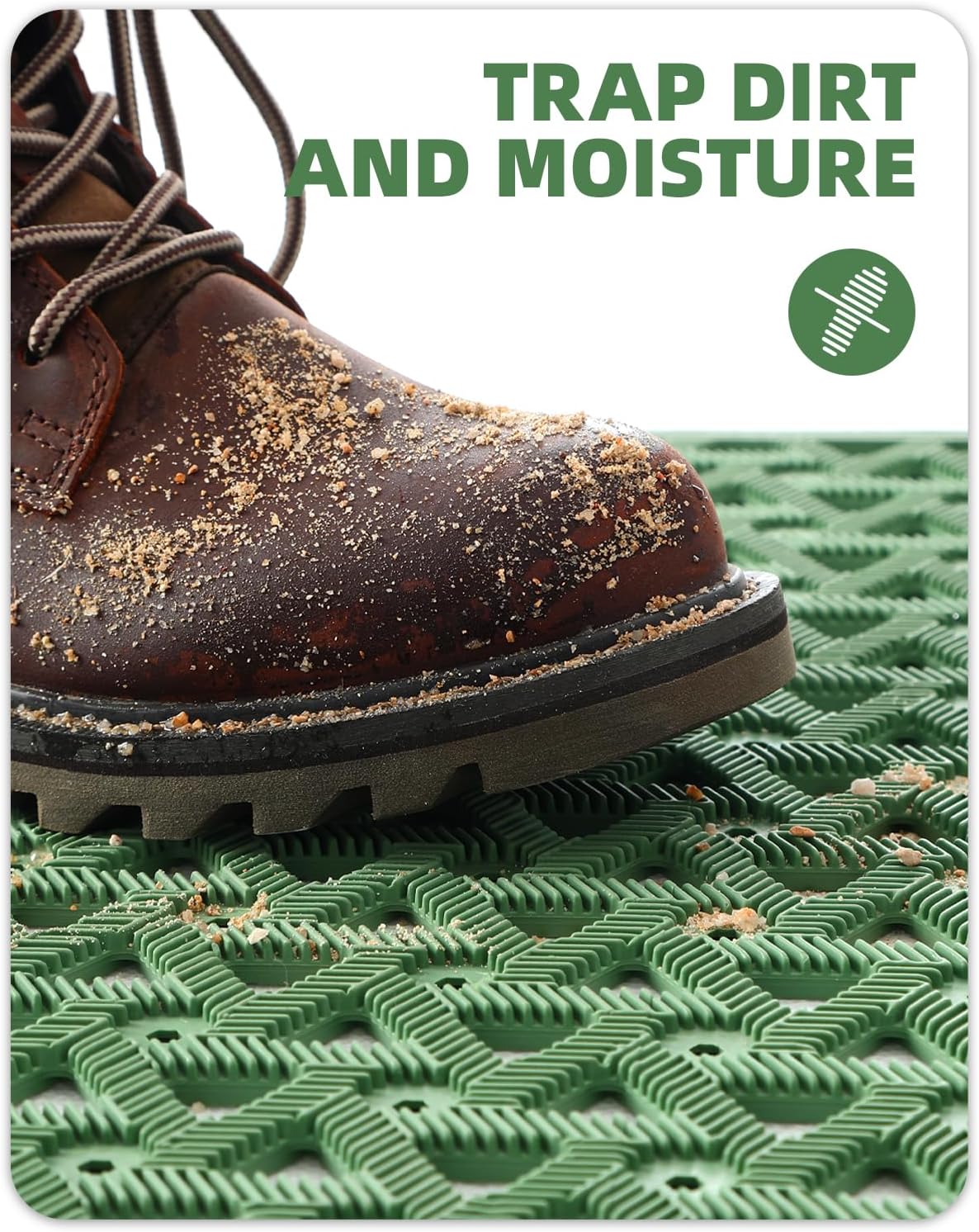 - CAPTURE DIRT & MOISTURE: Our front door mat is designed with deep grooves and a beveled rubber border, creating a powerful barrier against dirt, mud, debris, and moisture; The innovative retention dam ensures that all unwanted elements are captured and contained, so your floors stay clean and dry