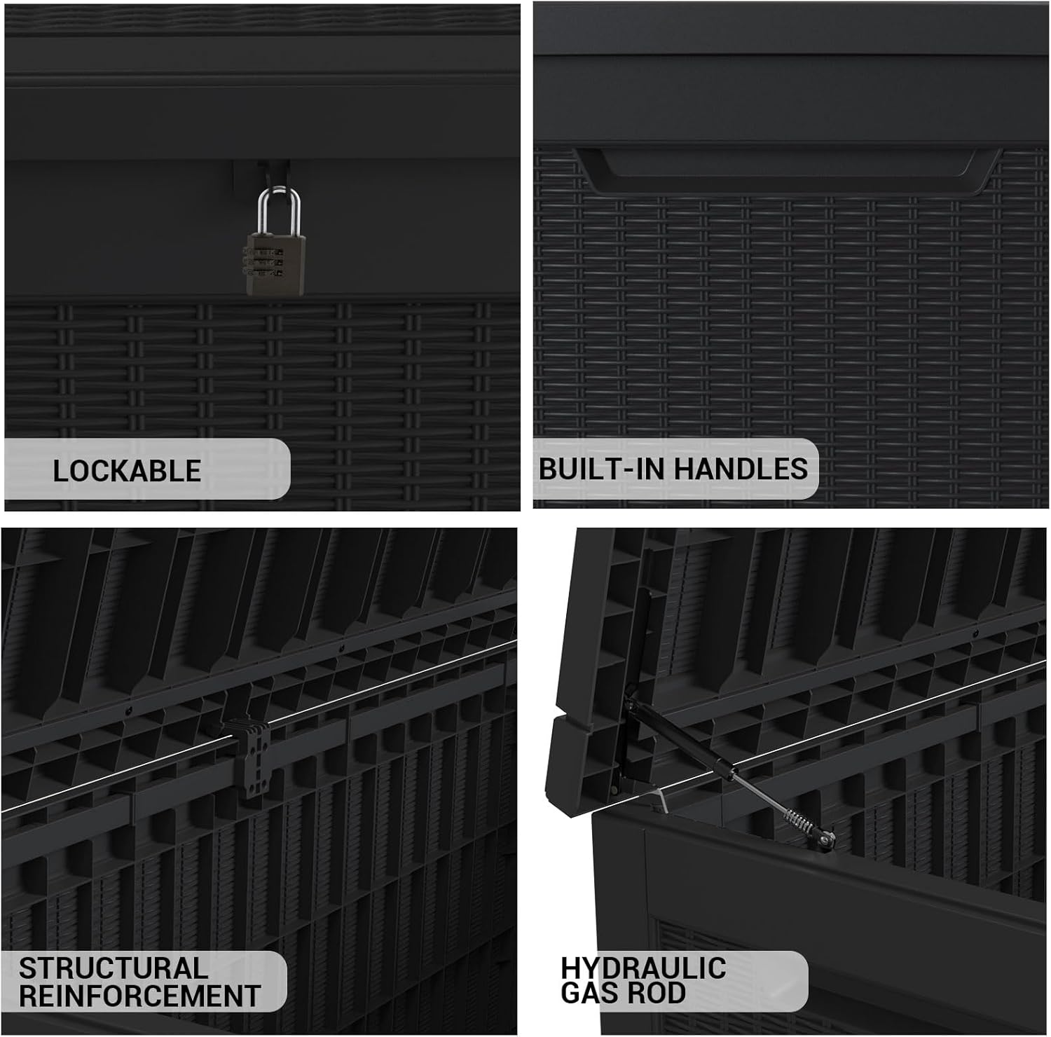 DRATO 260 Gallon Deck Box, Outdoor Large Waterproof Resin Storage Box with Lockable Lid for Patio Cushions, Gardening Tools, Sports Equipment, Black