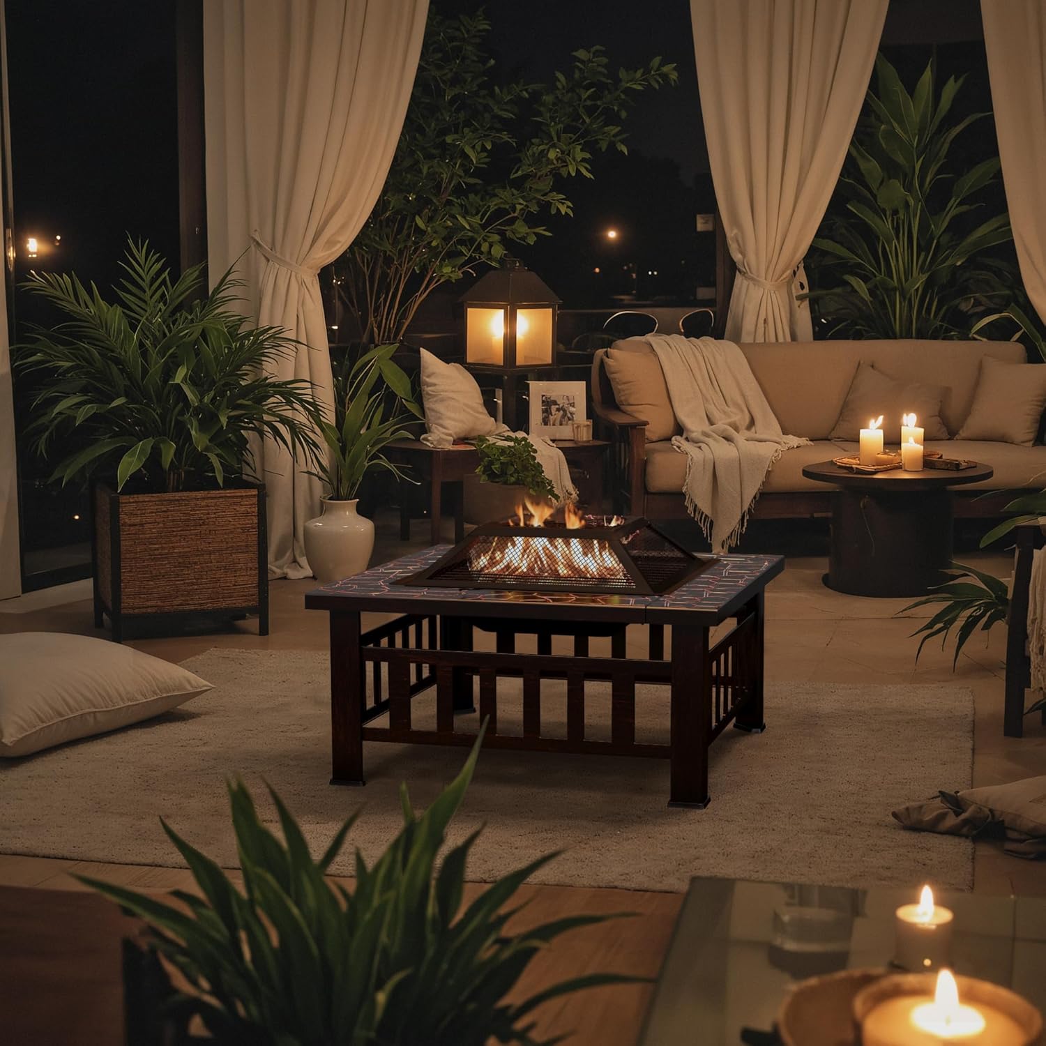 - [ Reliable Security ]: Firepit table features square design with sturdy legs for stability, while the mesh spark screen and poker provided effectively prevent sparks from flying and safely move the grill.