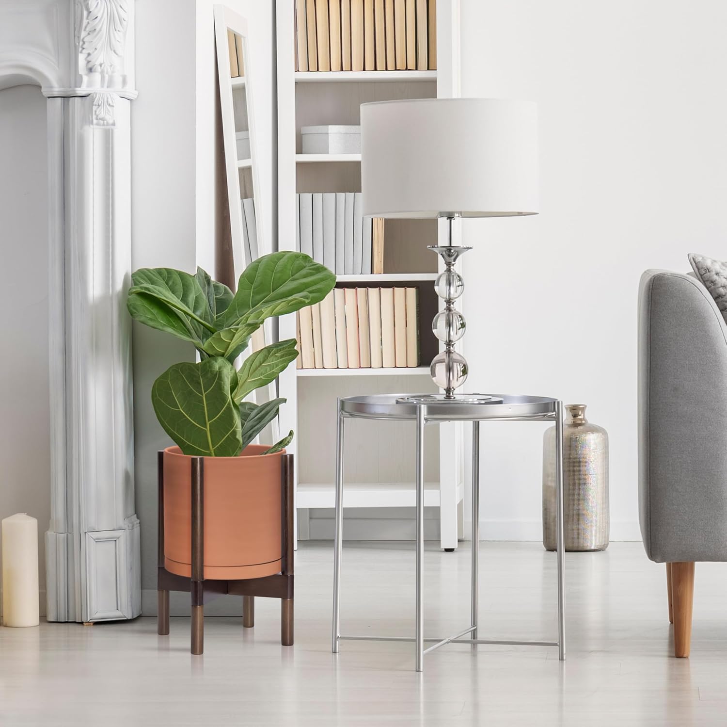 - A Complete Set: Mid-century terracotta planter, combined with a sculptural, solid wood stand that match perfectly together and looks great in anywhere.