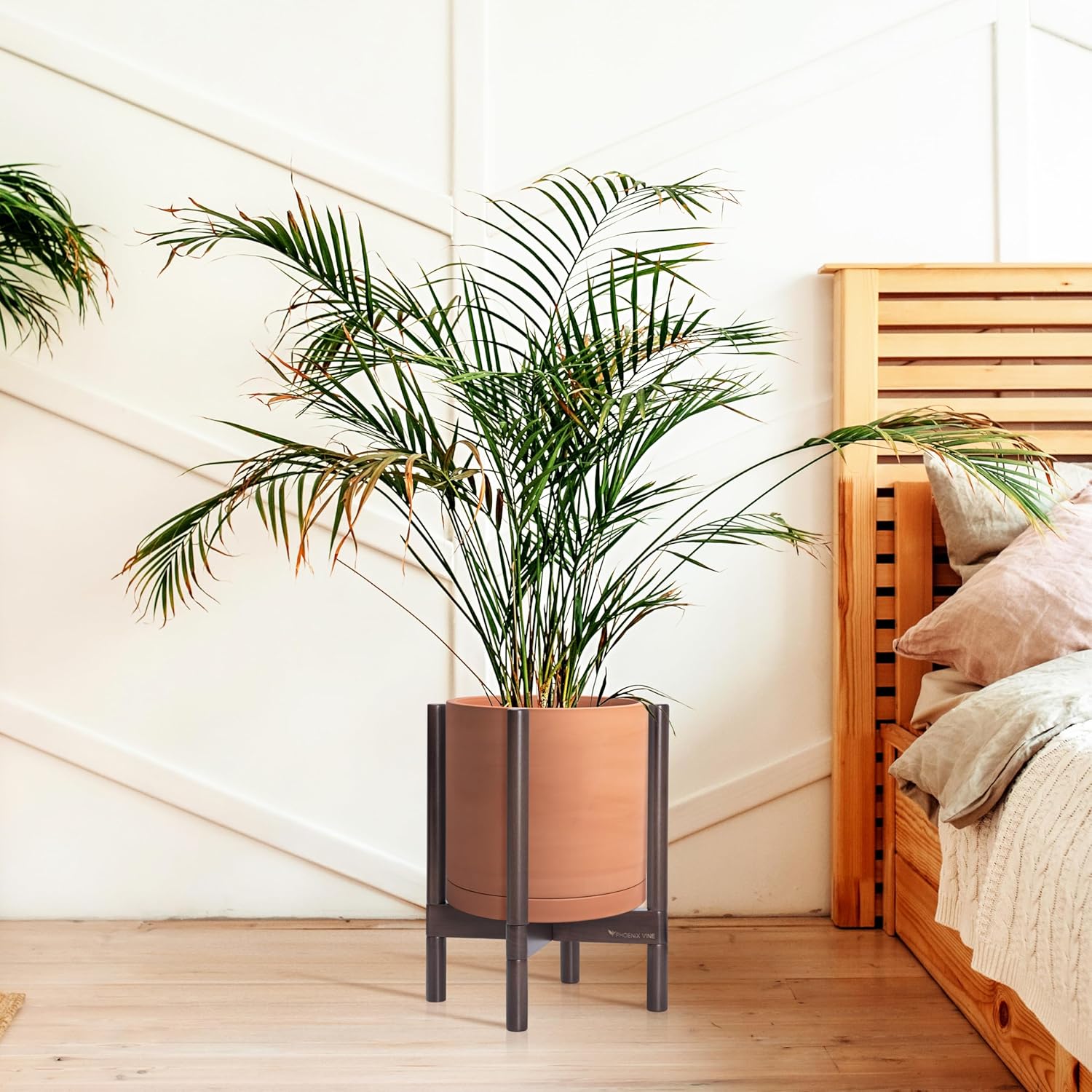 - A Complete Set: Mid-century terracotta planter, combined with a sculptural, solid wood stand that match perfectly together and looks great in anywhere.