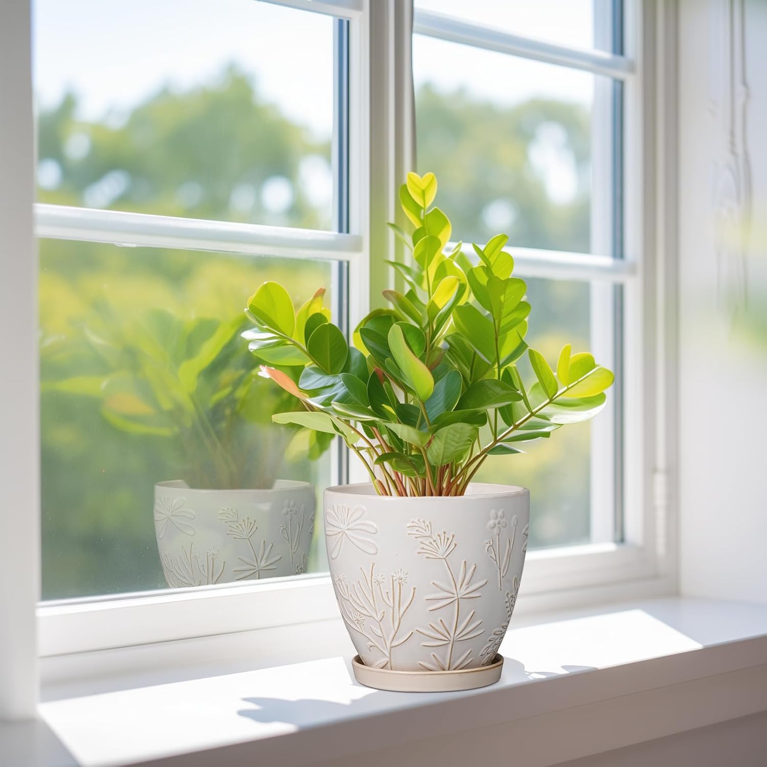 - Stylish Appearance: Our ceramic plant pot has a white main colour, a beautiful embossed petal and leaf pattern on the surface, elegant appearance making it ideal for home decor, garden decor and office decor