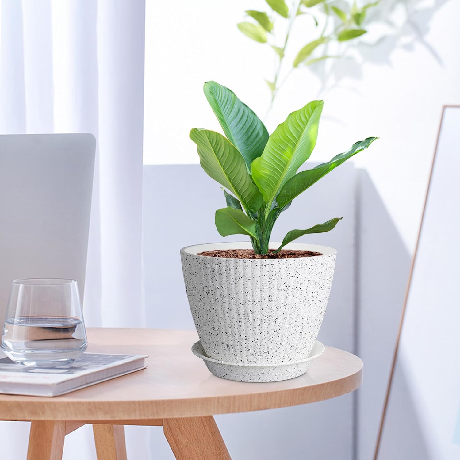 7/6.2/5.5/5/4.5/4 inch Flower Pots, 6 Pack Plant Pots for Small Indoor Outdoor Plants, Plastic Planters with Drainage Holes and Saucers for Garden Succulent House Plants, Speckled White