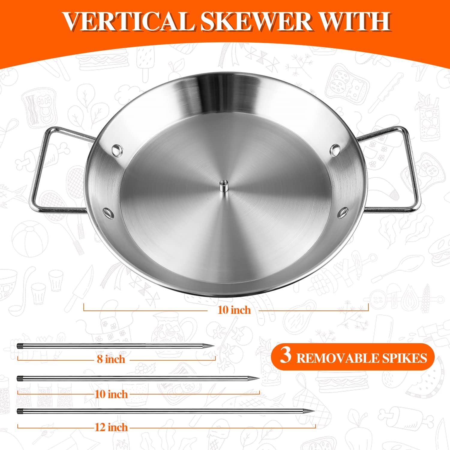 - 【Adjustable spikes】: This vertical skewer Al pastor has 3 different lengths of Stick(8" ,10" ,12" ) and fits most ovens, smokers, grills, etc. The upright grill replaces the traditional fragile bamboo skewers, which are more durable and can handle several pounds of meat without tipping over. The sticks are thick and won't break and tilt, and the sharp point makes the meat easy to stack.