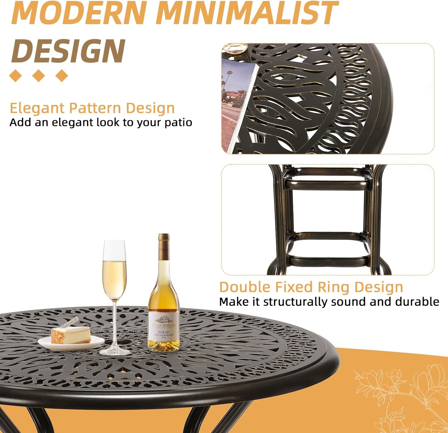 - 【Premium Materials】The outdoor swivel bar stools set is made from cast aluminum for long-term durability. Resistant to rust, weather, fade, crack. The patio furniture set features an oil-rubbed bronze finish for a timeless look that is designed to withstand the elements year-round. If you use this set by the pool, it’s all-weather quality helps prevent water damage caused by wet swimsuits and splashing. It is also easy to clean, you just need to use a cloth to easily wipe away the dirty things.
