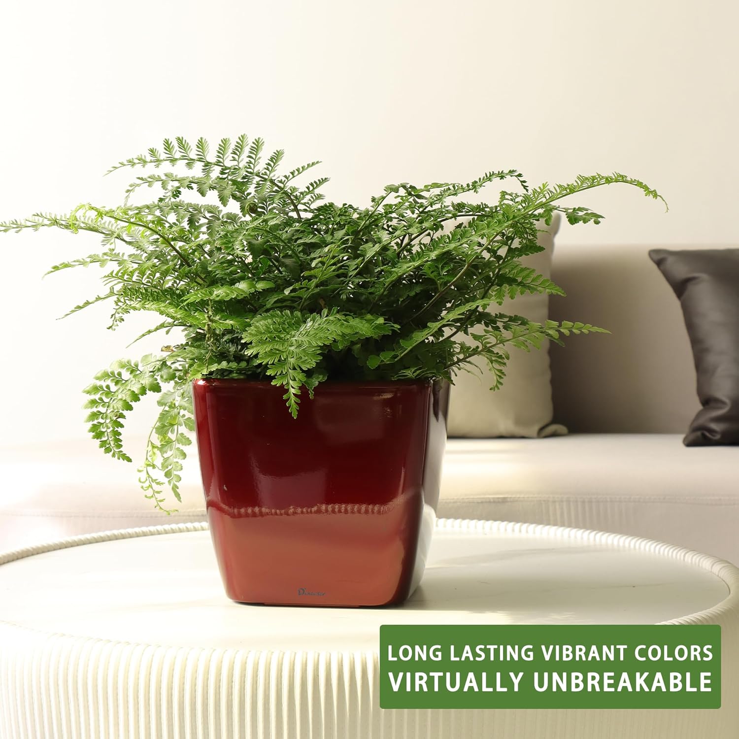 Dexceder 9x8 Self Watering Planter Indoor Outdoor, Inner Mat Design, Thickened Table Flower Plant Pot with Water Level Indicator (Red High Gloss)