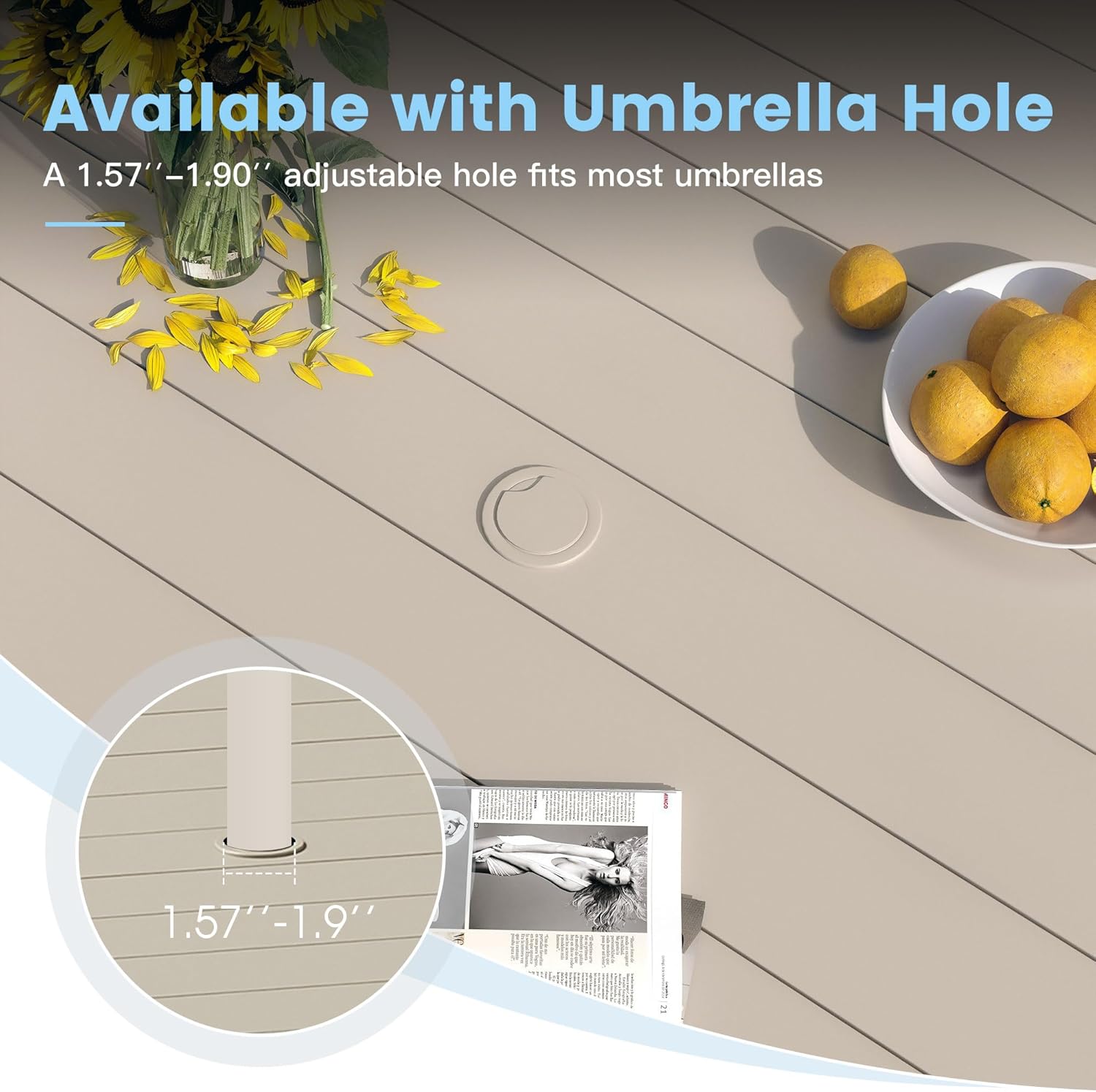 DIFY 48" Round Patio Dining Table for 6, Outdoor Metal Dining Table with 1.57" Umbrella Hole for Backyard Lawn Garden, Sandshell