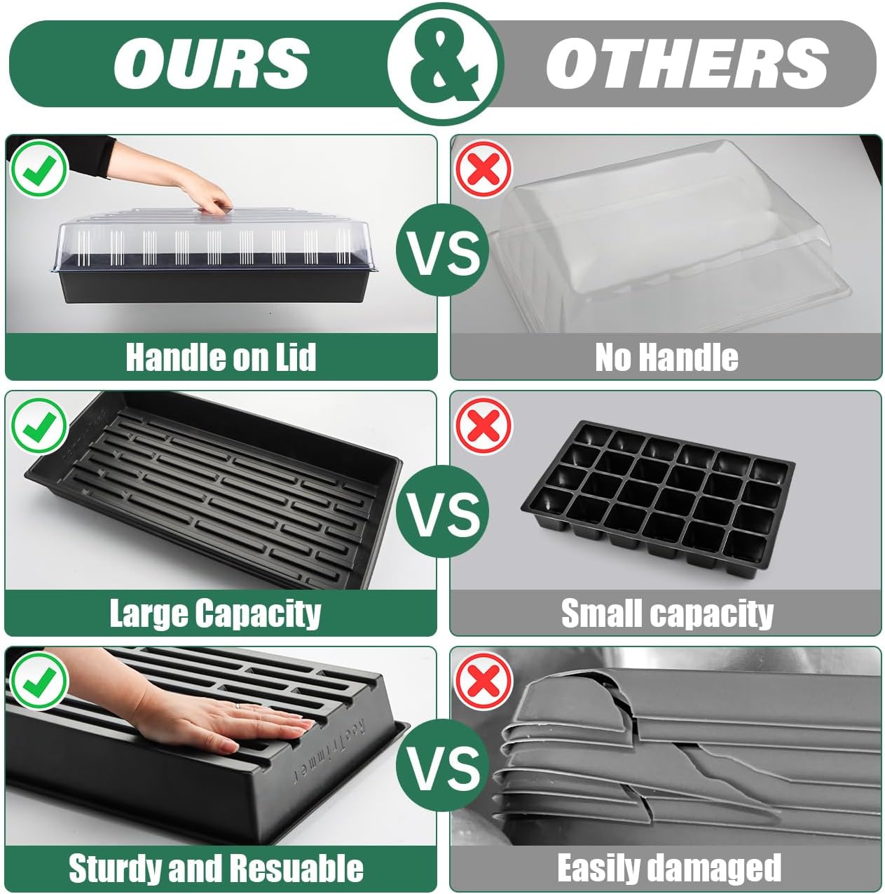 - 【Airtight Greenhouse Seal】Lock in Humidity, Speed Up Germination by 2X! Engineered with a snug, click-lock seal, our trays trap warmth and moisture like a pro greenhouse. Tested for peppers, herbs, and delicate orchids, this system cuts germination time while blocking mold-causing drafts. Dreaming of earlier harvests or show-stopping blooms? This is your secret weapon.