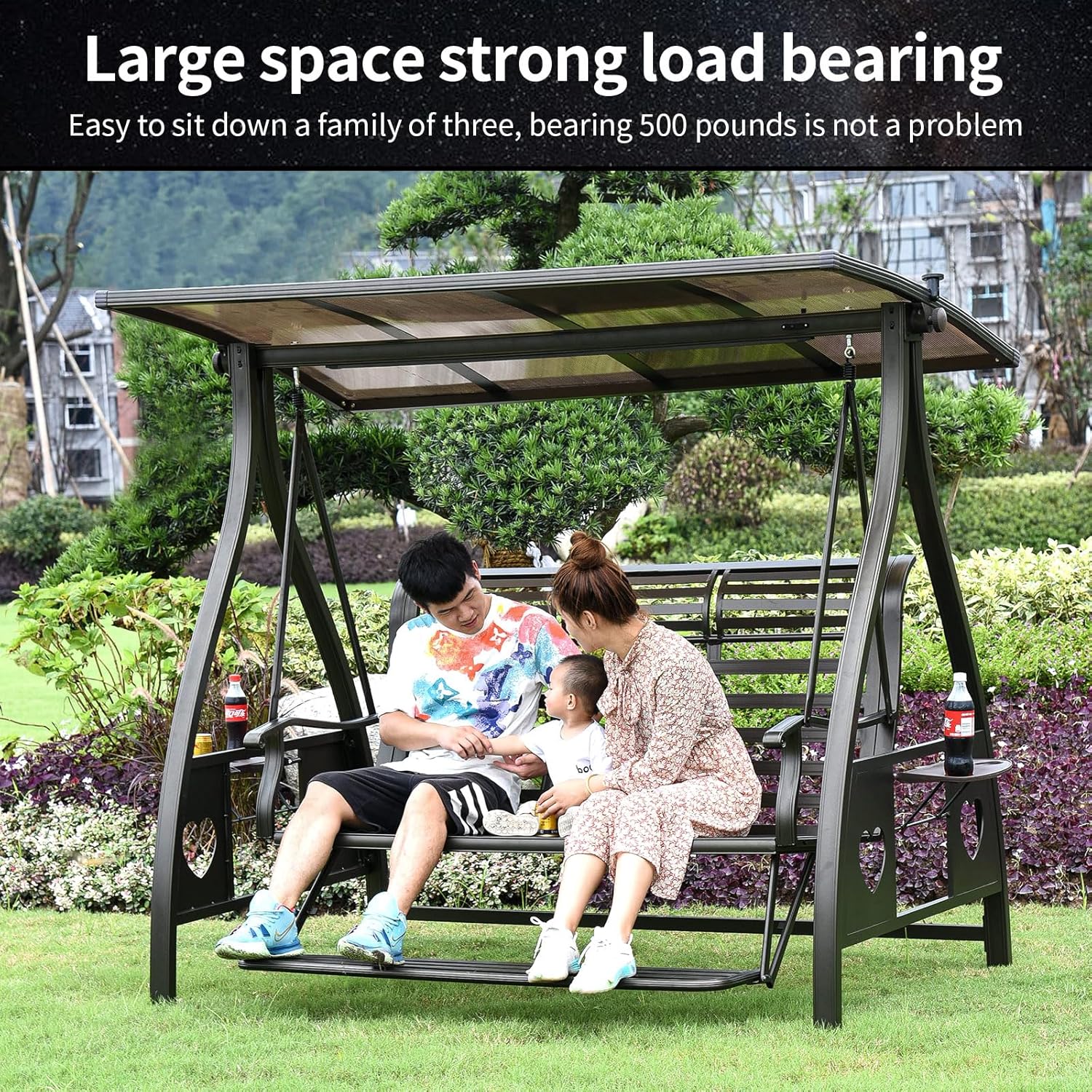 - Adaptable Canopy: The 3-seat patio swing provides adjustable hardtop, allowing customers to read, nap, or relax on porch swing without being affected by glaring rays. The outdoor patio porch swing with adjustable PC sun panel canopy design ensuring comfort in any weather. And you could easily adjust the suitable angle of the porch swing canopy by the sturdy knob